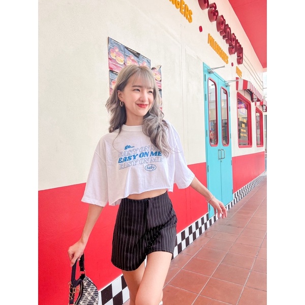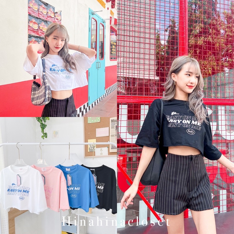 พร้อมส่ง💕 ถูกที่สุด ส่งไวที่สุด เสื้อครอป โอเวอร์ไซส์ Oversize สไตล์เกาหลี งานสกรีน ลาย Go easy on me baby รหัส 807