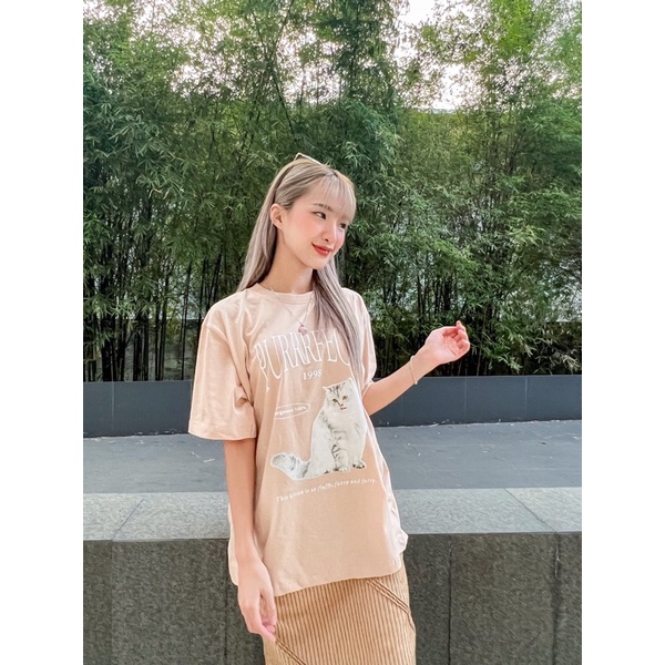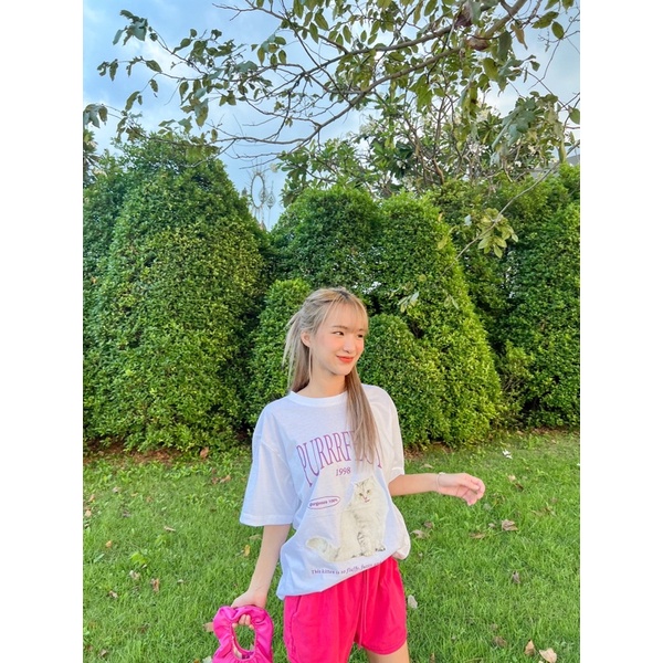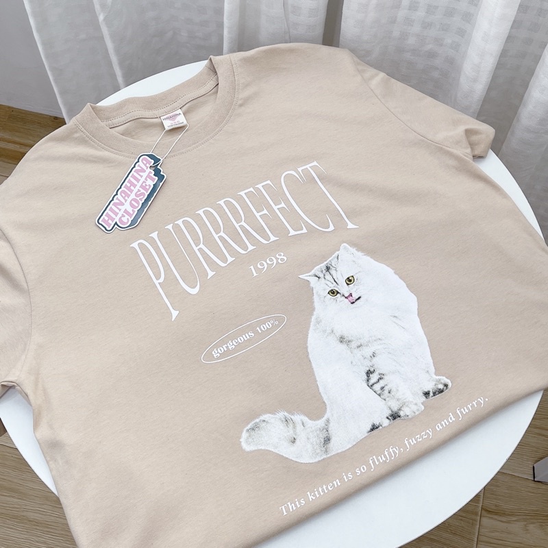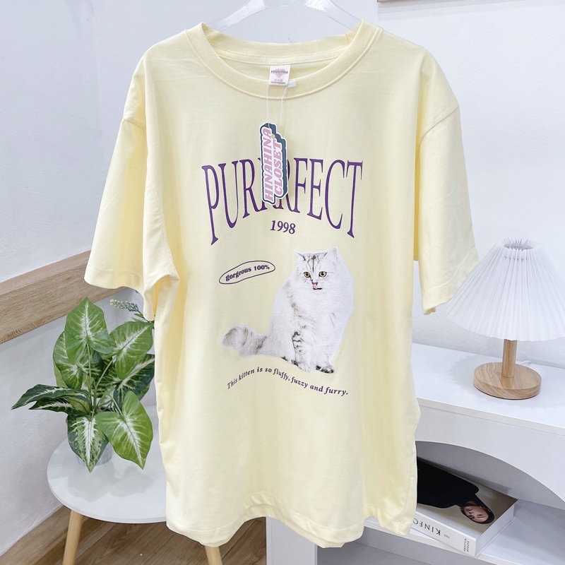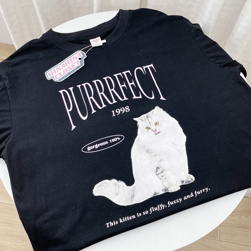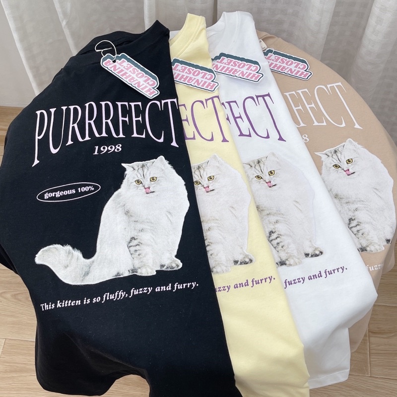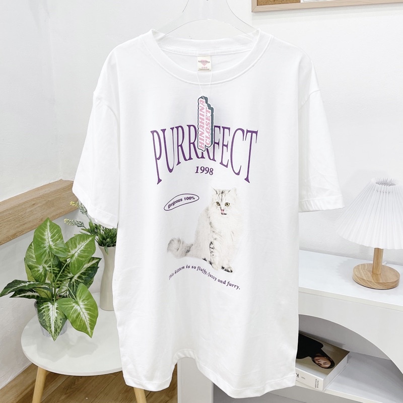 (ใส่โค้ด HINA1997 ลด 30.-)พร้อมส่ง🐈 เสื้อยืด โอเวอร์ไซส์ Oversize สไตล์เกาหลี งานสกรีน PURRRFECT✨ รหัส 824