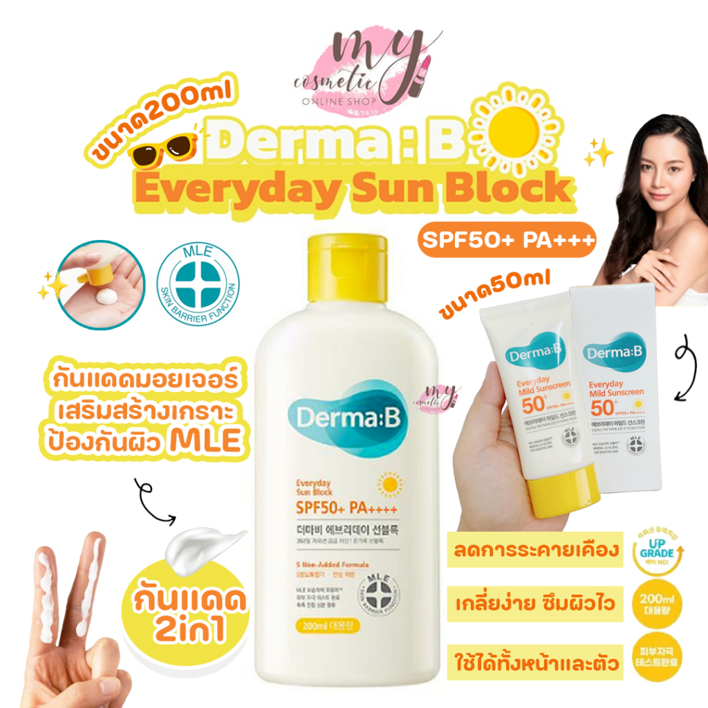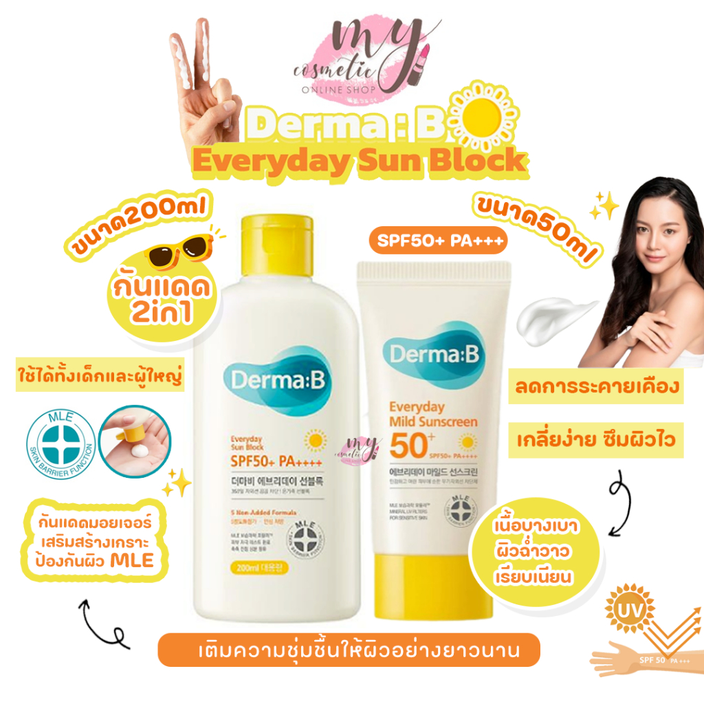 (🌼แท้/พร้อมส่ง🌼) Derma:B Everyday Sun Block SPF50+ PA++++ กันแดดมอยเจอร์ เสริมสร้างเกราะป้องกันผิว