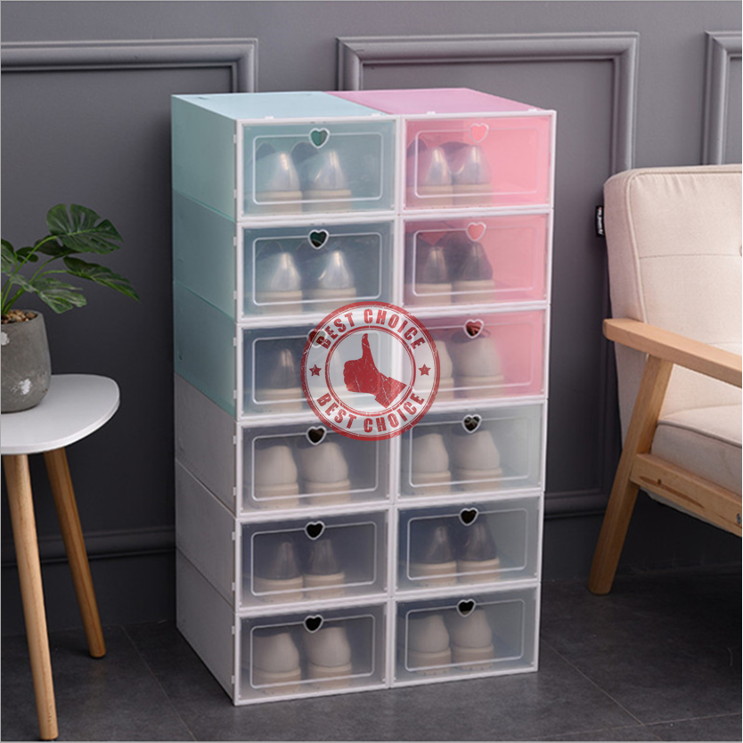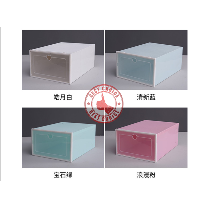กล่องรองเท้า แบบใสฝาเปิดปิดได้ พับเก็บได้ สีพาสเทล 4 สี ประกอบง่าย สีสันสวยงาม 🐬 bc99