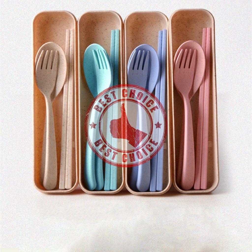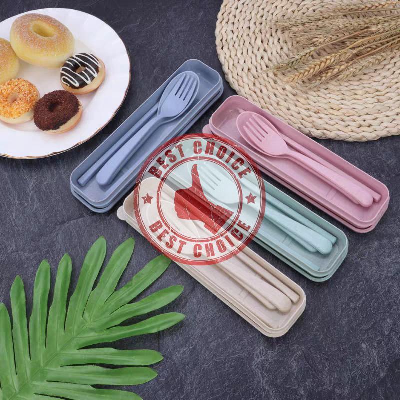 ชุดช้อนส้อม พลาสติก ผลิตจากฟางข้าว ชุดช้อนส้อมตะเกียบ เครื่องใช้ในบ้าน 🦄 bc99