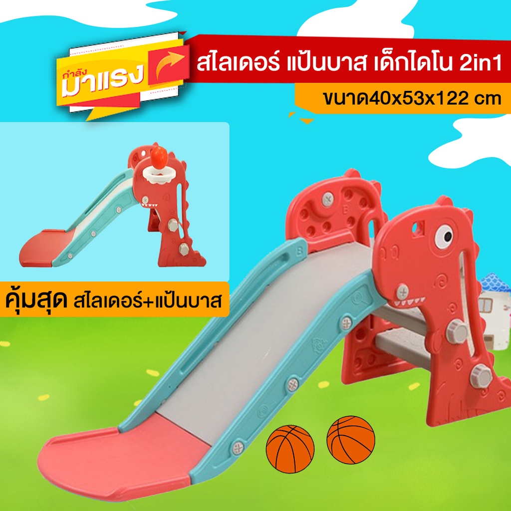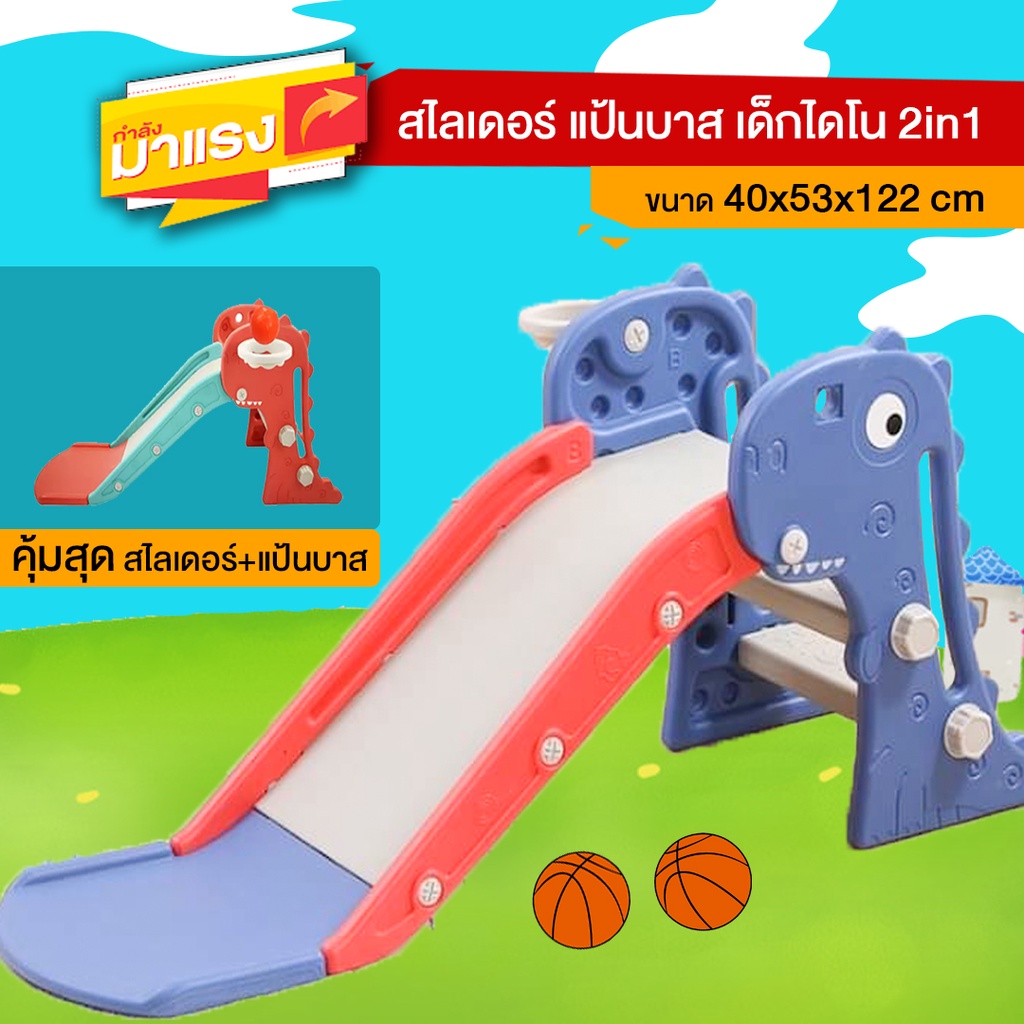 Lookmeebabyproducts สไลเดอร์ดราก้อนน้อย พร้อมแป้นบาส แถมลูกบอล พรีเมี่ยมแข็งแรง ของขวัญเด็ก พร้อมส่ง