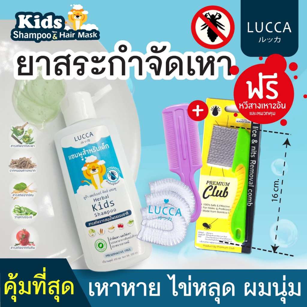 ใหม่💞 ยาฆ่าเหา LUCCA🔹หัวหอม แก้คัน แชมพู+หวีสางเหา สมุนไพรสูตรกำจัดเหา ไข่เหา แชมพูเด็ก กำจัดเหา ( Herbal Kids shampoo)