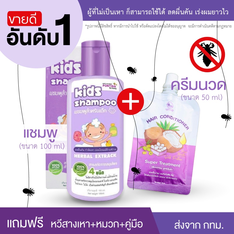 แชมพูกำจัดเหา💜ฟรี‼️หวีสางเหา💜แชมพูเด็ก สมุนไพรออแกนิก ฆ่าเหา อ่อนโยน กลิ่นหอม ใช้ง่าย (100ml)