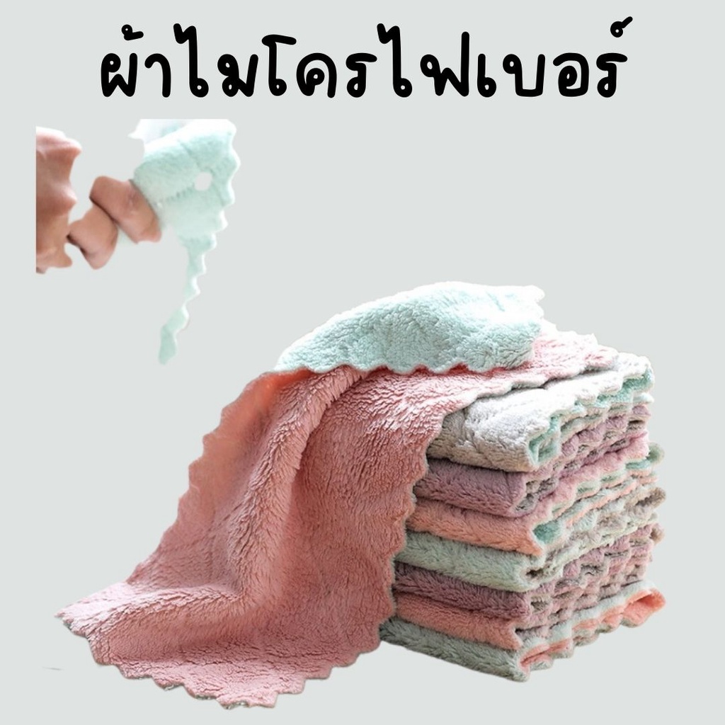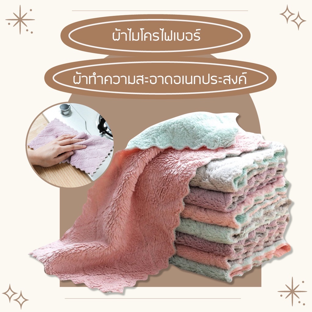 ผ้าไมโครไฟเบอร์ ผ้าเช็ดทำความสะอาดอเนกประสงค์ ผ้าเช็ดโต๊ะ เช็ดจาน ซึมซับได้ดี