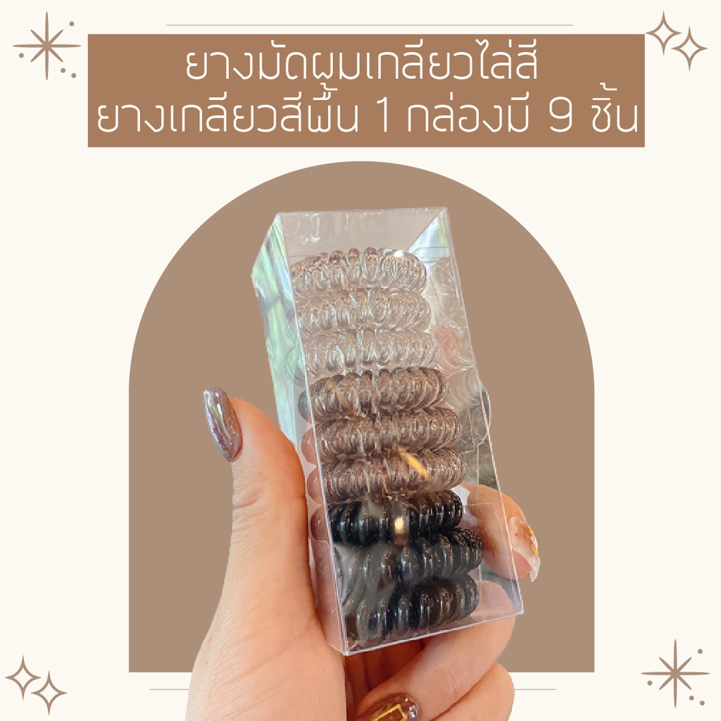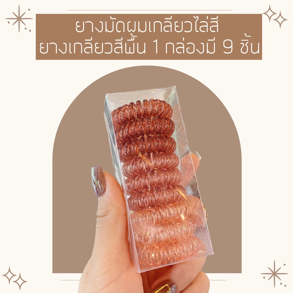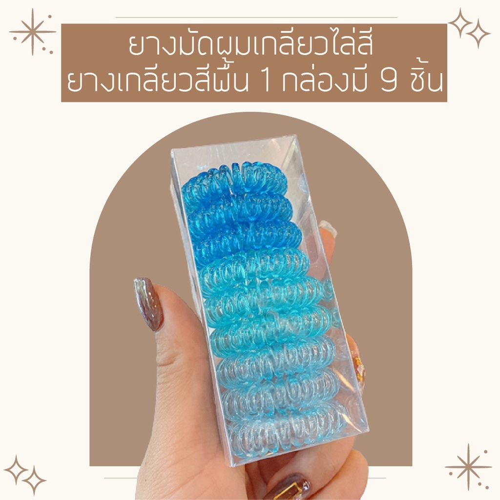 คุ้มมาก!!! ยางมัดผมเกลียว ยางเกลียวกล่องละ 9 เส้น ยางพลาสติก TPU