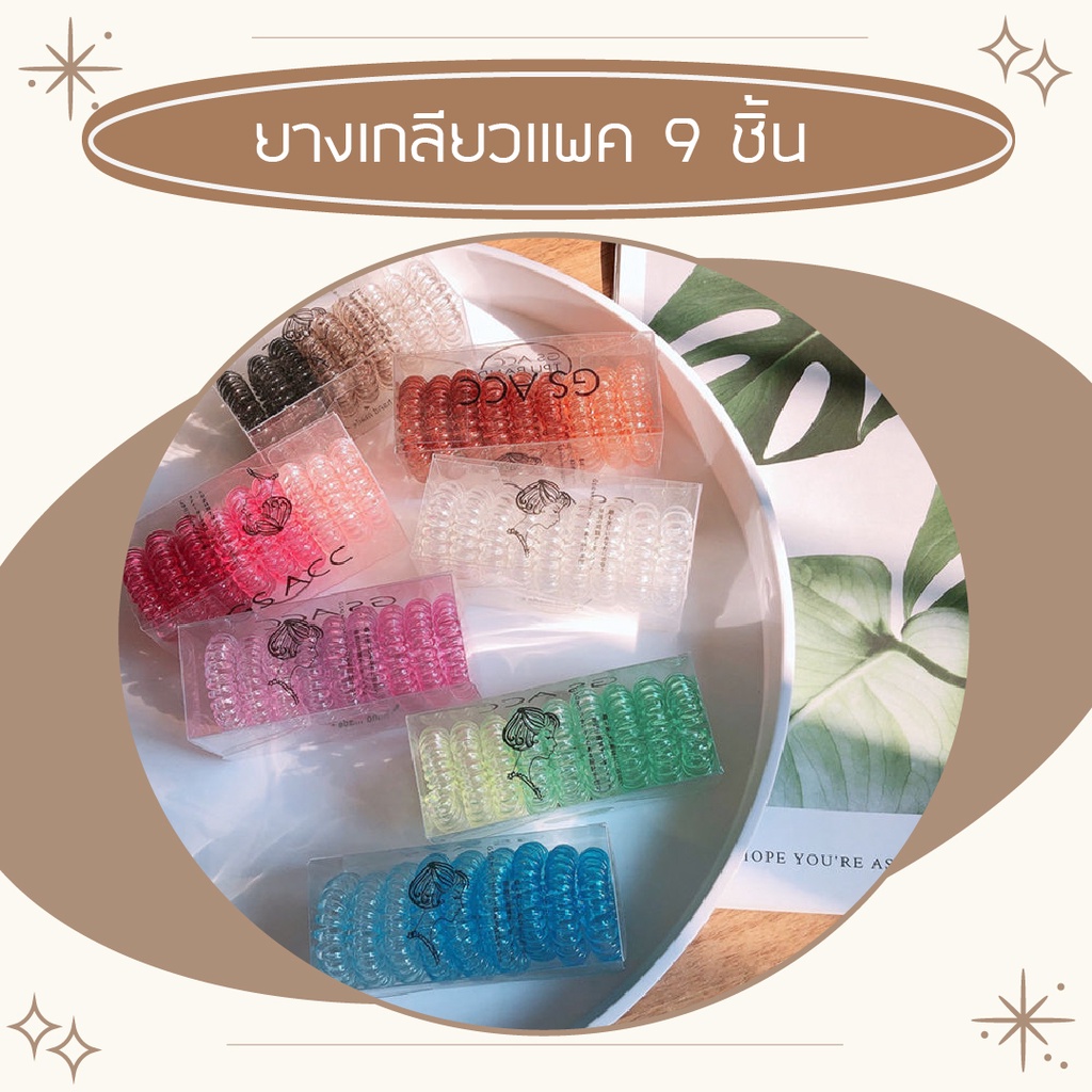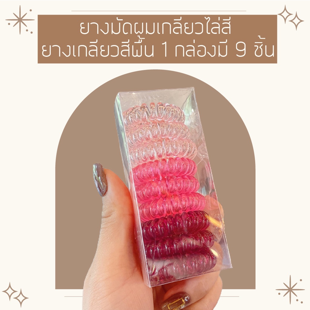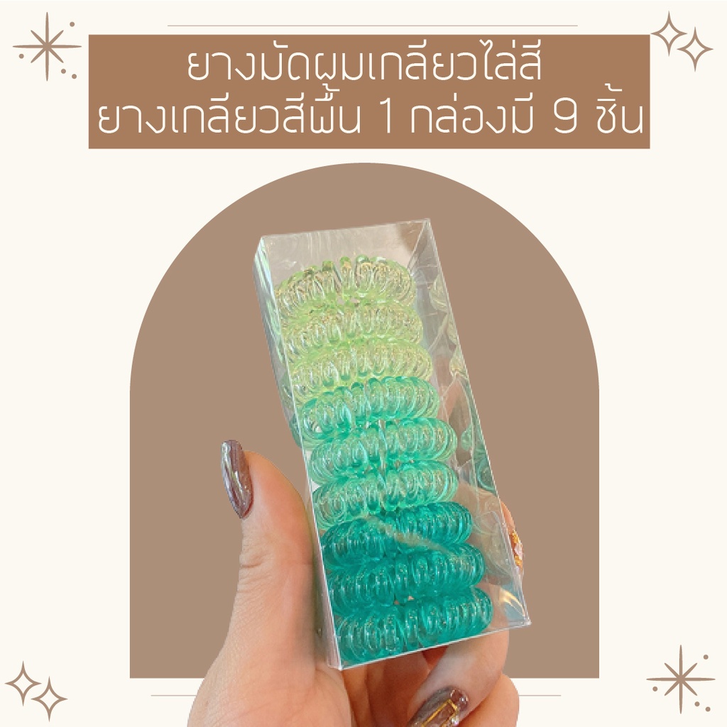 คุ้มมาก!!! ยางมัดผมเกลียว ยางเกลียวกล่องละ 9 เส้น ยางพลาสติก TPU