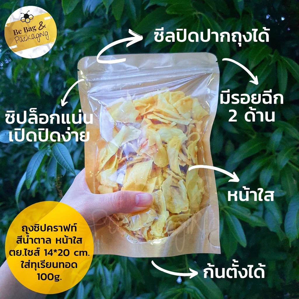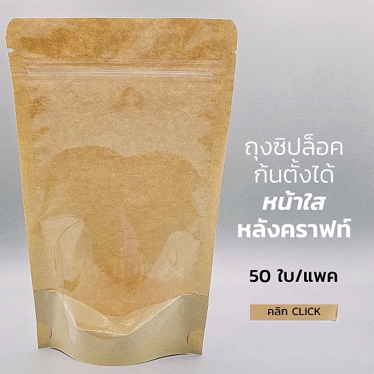 ถุงซิปหน้าใสหลังคราฟท์ ก้นตั้ง แพ็ค 10/ 20/ 50 ใบ
