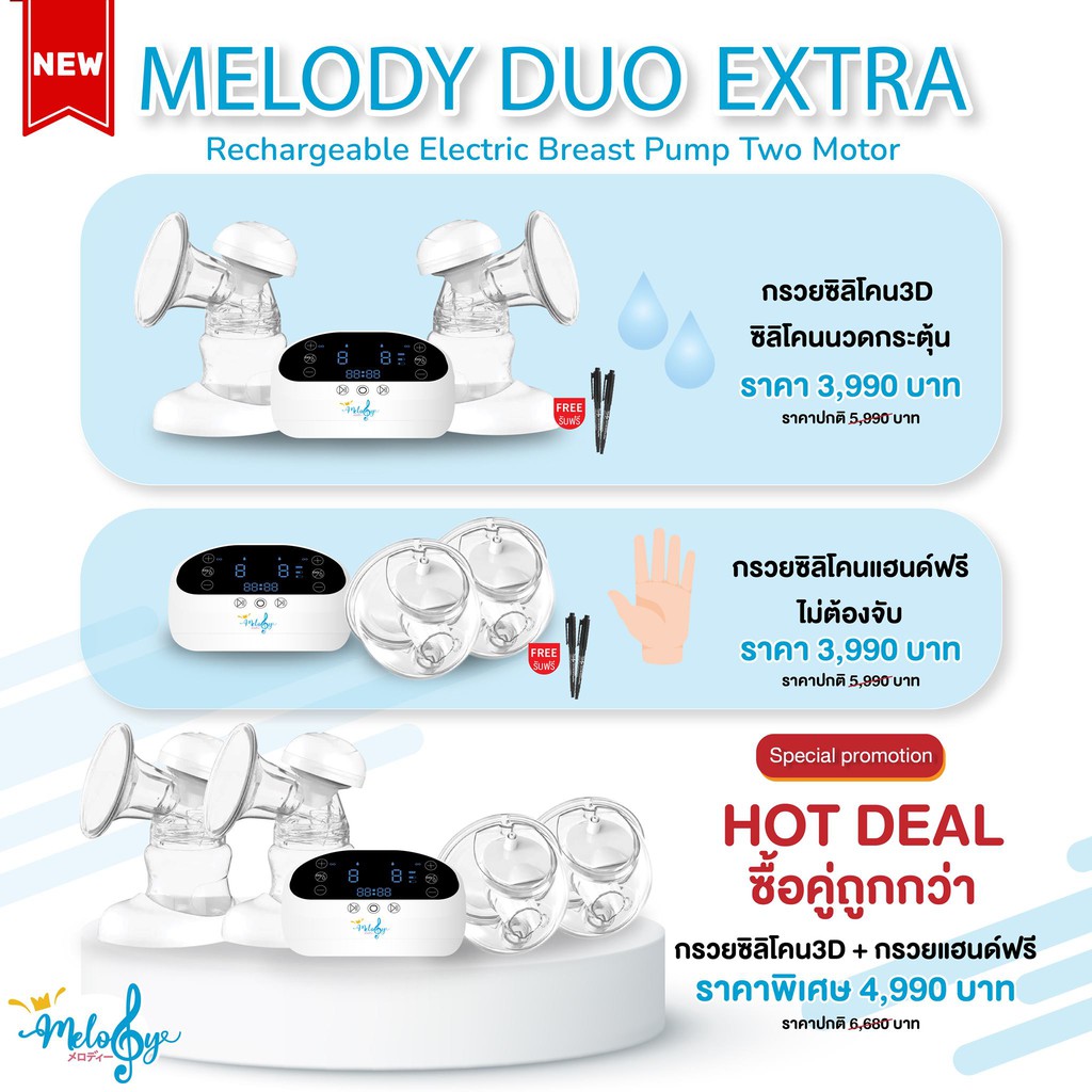 Melody Duo Extra เครื่องปั๊มนม 2 มอเตอร์ กรวยซิลิโคน3D