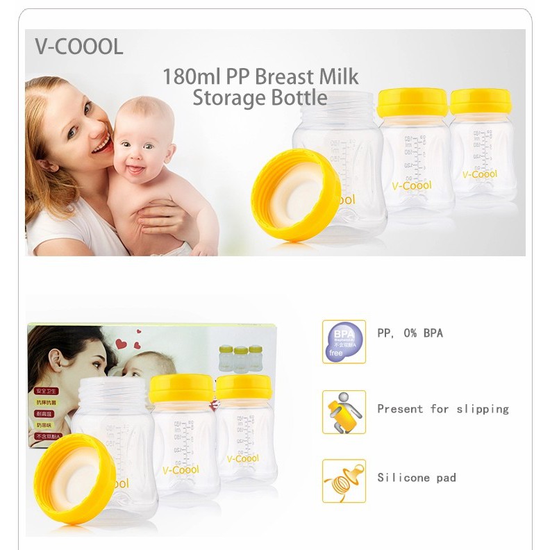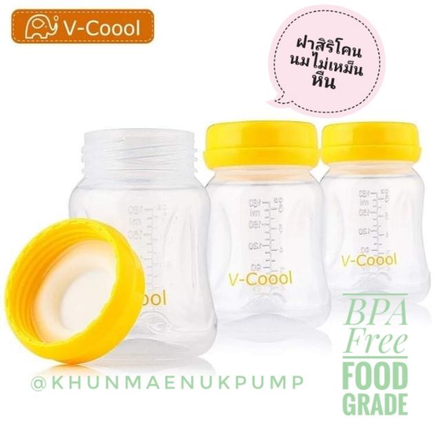 ขวดนมคอกว้าง ขวดเก็บน้ำนม V coool BPA Free ขนาด6 ออนซ์ ฝาสุญญากาศ นมไม่เหม็นหืน