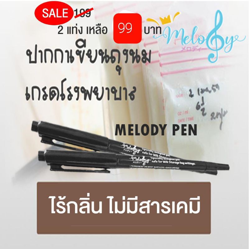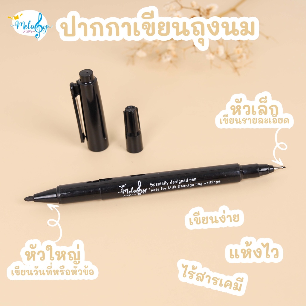 Melody ปากกาเขียนถุงนม แบบ สองหัว ขนาด 0.5 mm. และ 1 mm. กลิ่นบางเบา สำหรับคุณแม่ และ ลูกน้อย