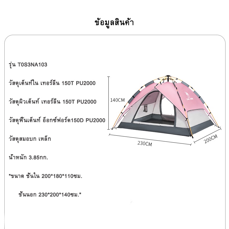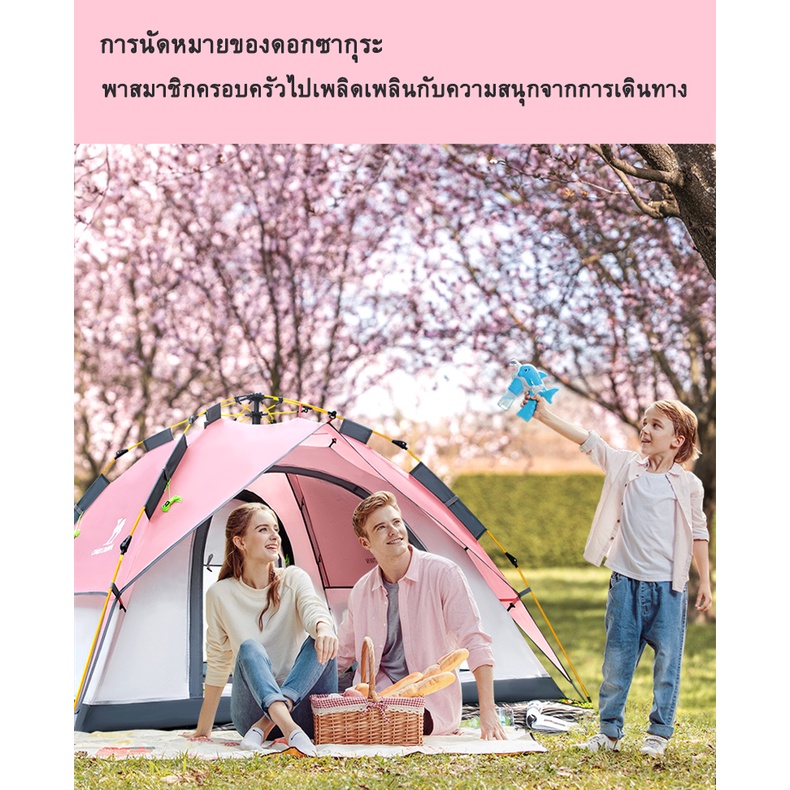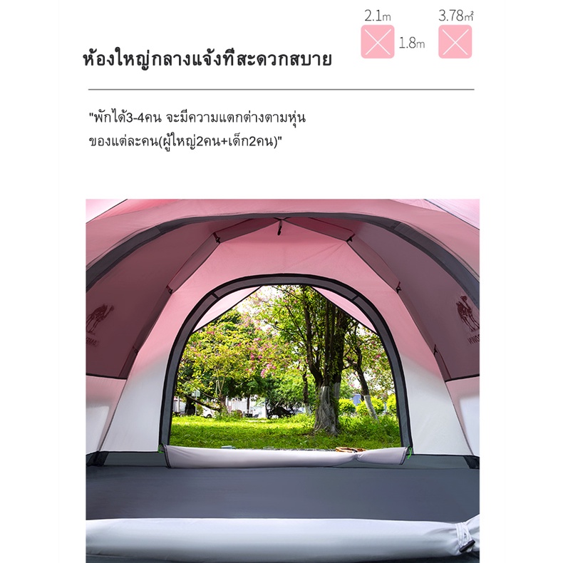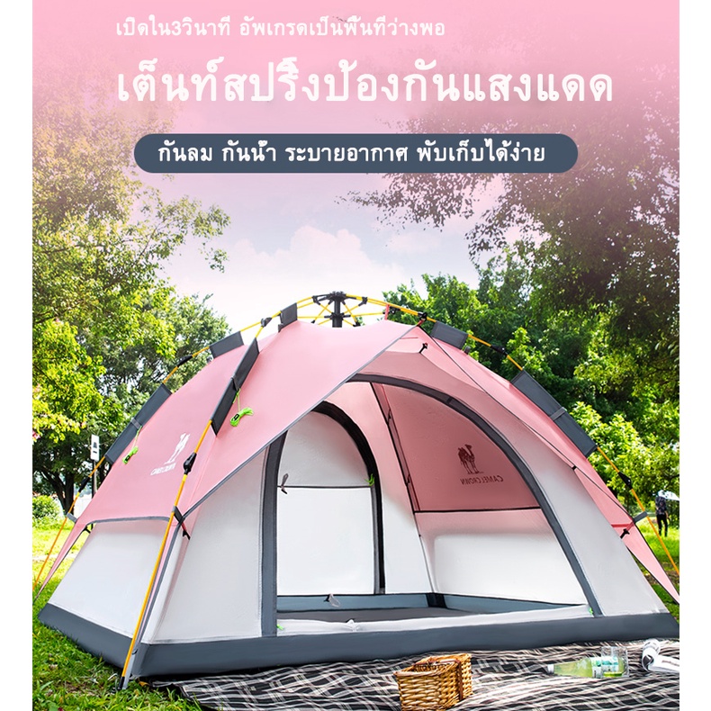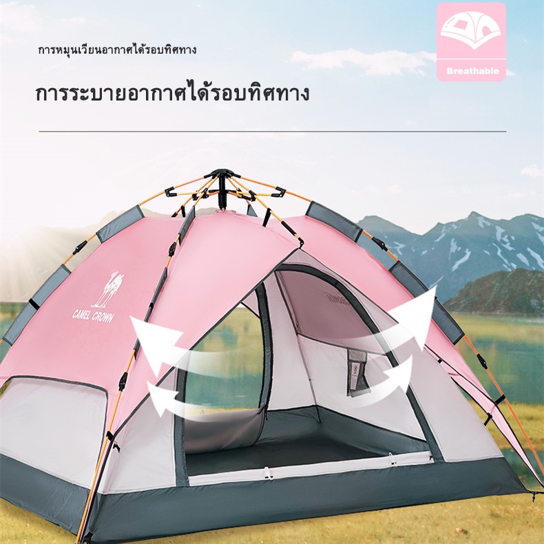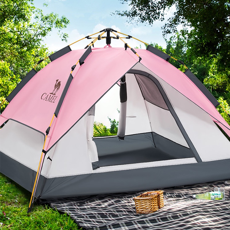 CAMEL CROWN เต็นท์กางเต้นท์ สีชมพู 3~4 คน เปิดอัตโนมัติ แบบพกพา กันลม และกันฝน สําหรับตั้งแคมป์สนามเด็ก