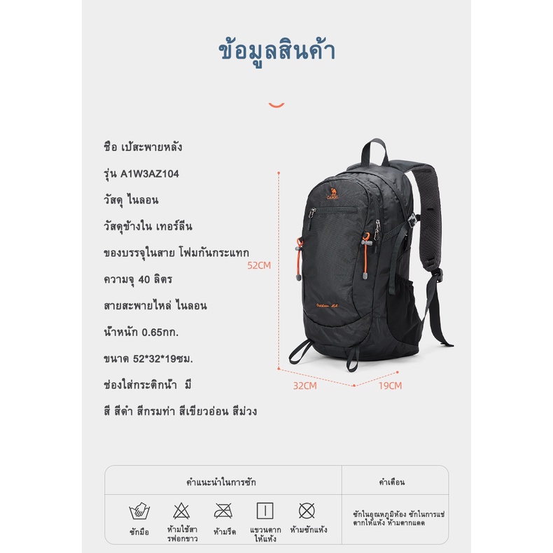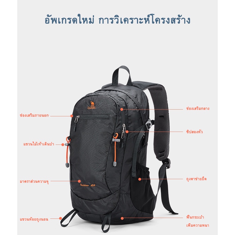 CAMEL CROWN กระเป๋าเป้สะพายหลัง ความจุขนาดใหญ่ 40 ลิตร ระบายอากาศ ทนต่อการสึกหรอ สําหรับเดินป่า ตั้งแคมป์