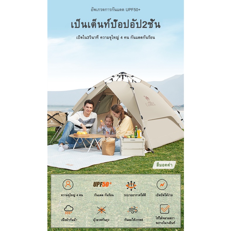 CAMEL CROWN เต็นท์กางเต้นท์อัตโนมัติ 3~4 คน กลางแจ้ง แบบพกพา พับ กันฝน กันแดด เต็นท์ ปิกนิก