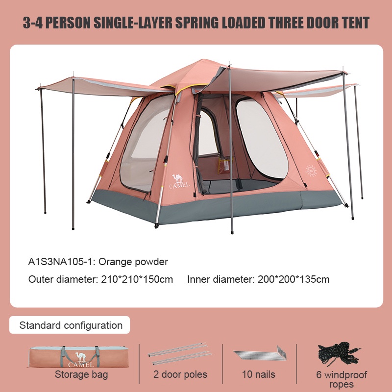 CAMEL CROWNสามประตู เต็นท์กลางแจ้ง 3 ~ 4 คนเต็นท์อัตโนมัติกันฝนอุปกรณ์กันแดด