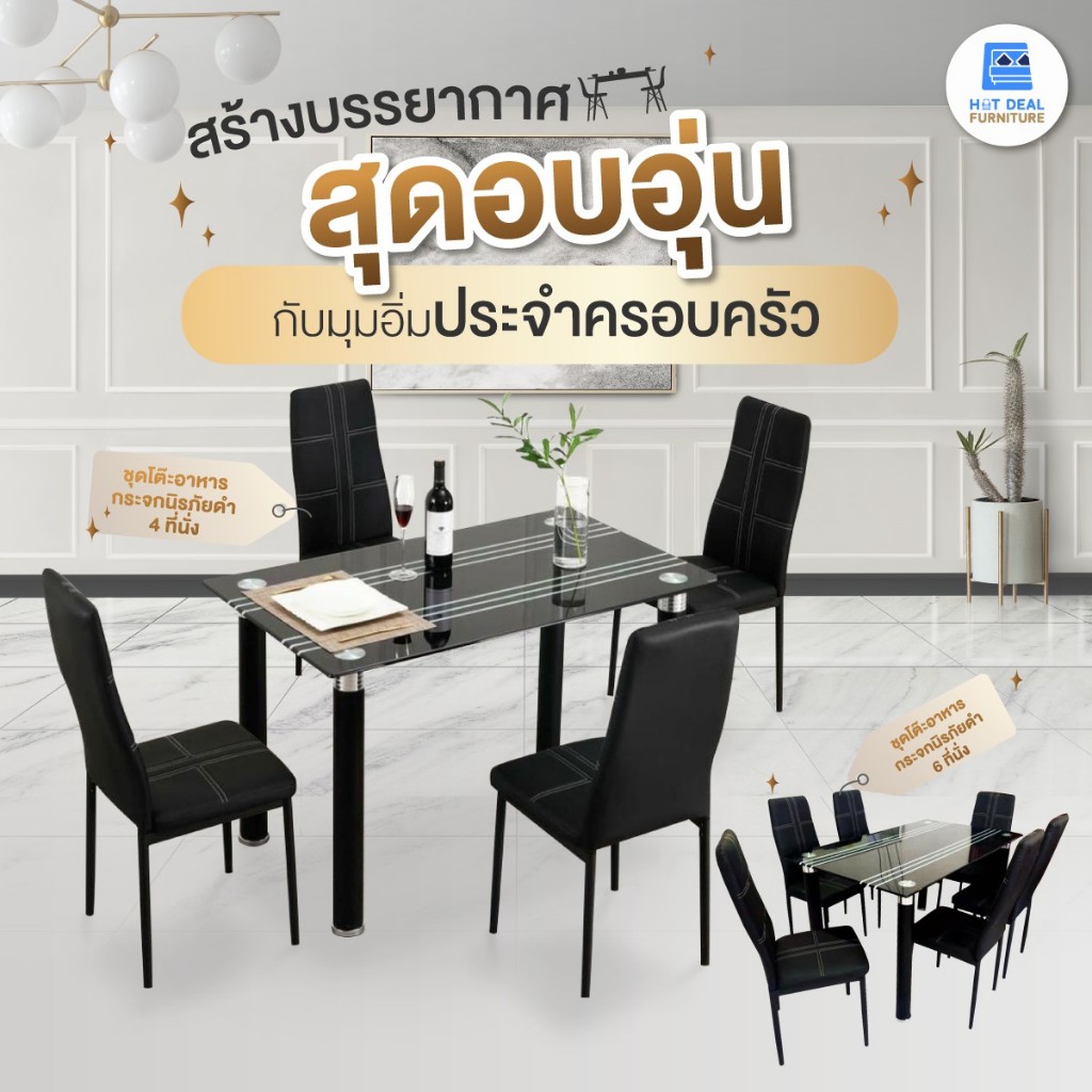 [HOT DEAL] ชุดโต๊ะอาหาร + เก้าอี้ 4 และ 6 ที่นั่ง กระจกดำ (จัดส่งเป็นแพ็คลูกค้าประกอบเอง)