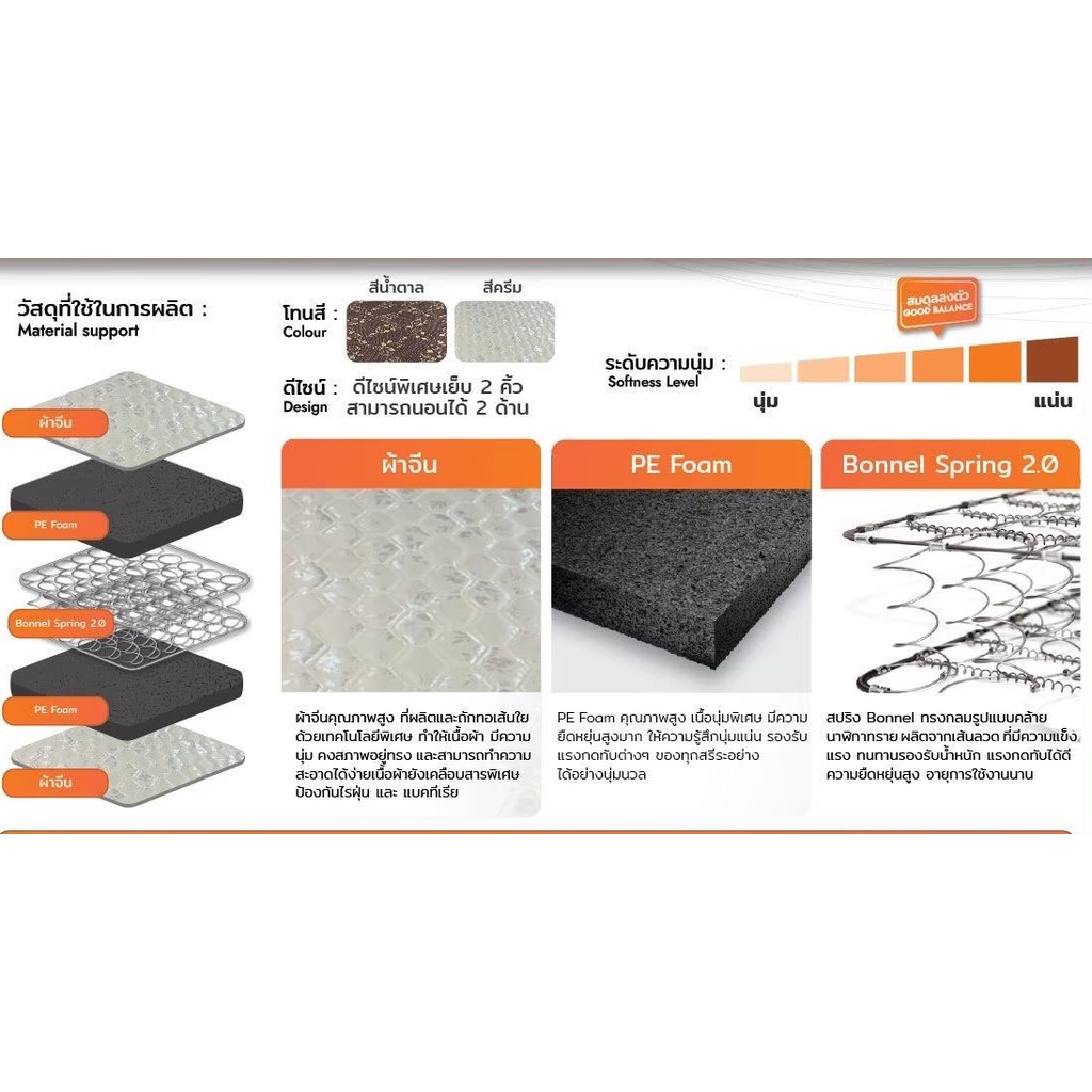 [HOT DEAL] ที่นอนสปริงเสริมยาง PE หนา9 นิ้ว ราคาประหยัด ผ้าหุ้มกันไรฝุ่น ที่นอนสปริงถูกๆ