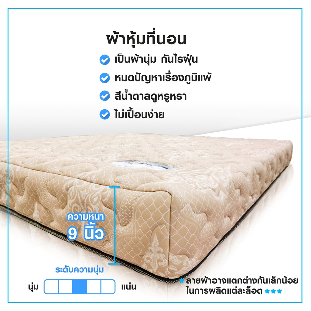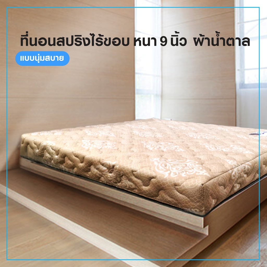 [รับประกัน6ปี] ที่นอน ที่นอนสปริงไร้ขอบ แบบนุ่มสบาย หุ้มผ้าสีน้ำตาลกันไรฝุ่น ส่งฟรี*