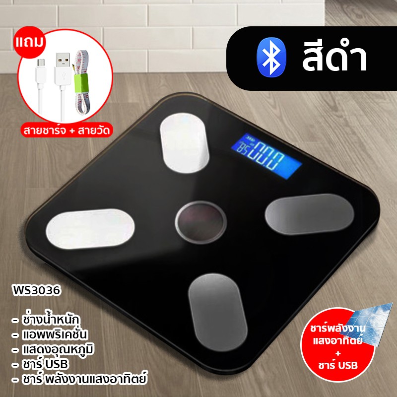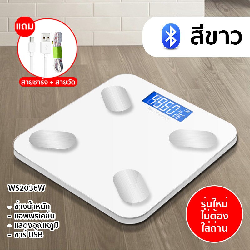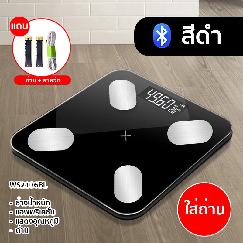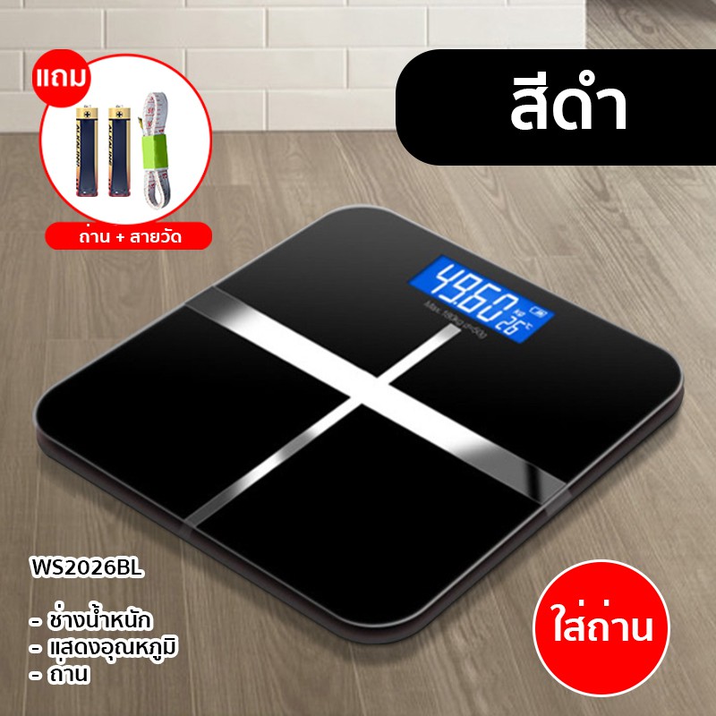 เครื่องชั่งน้ำหนักดิจิตอล หน้ากากกว้าง 26 ซม ตราชั่งดิจิตอล 180KG Bluetooth พร้อมจอ LCD ใหญ่ กระจกเทมเปอร์ เครื่องชั่ง