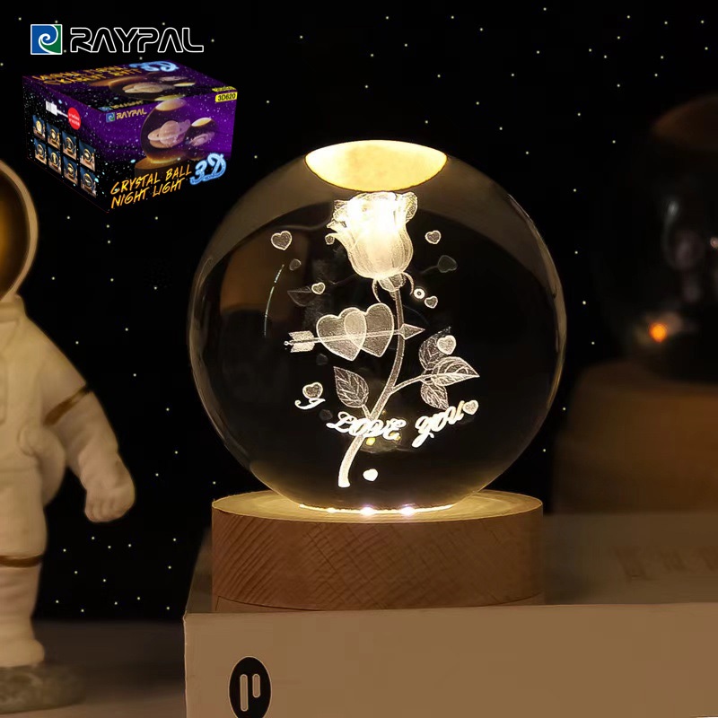 NEW โคมไฟคริสตัล 3D USB โคมไฟตกแต่งห้องนอนLED ลูกแก้ว6cm ของขวัญวันเกิด