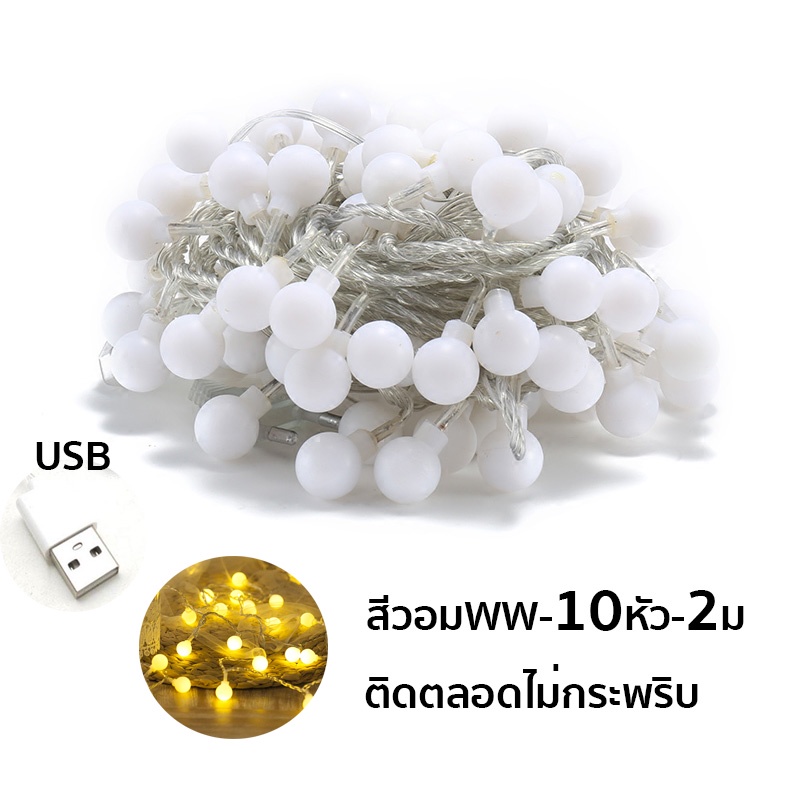 ไฟเชอรี่ ไฟกลมled ไฟตกแต่งห้อง USB ไฟกระพริบตกแต่ง ไฟตกแต่ง ไฟประดับ สำหรับตกแต่ง LED 50หัว 40หัว ไฟปีใหม่