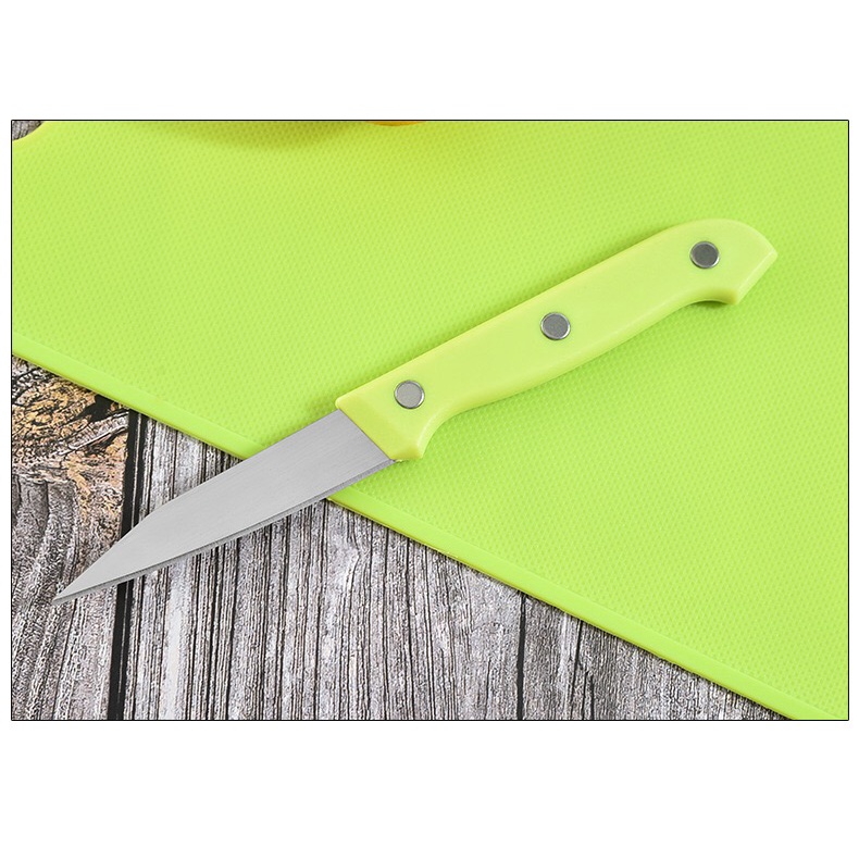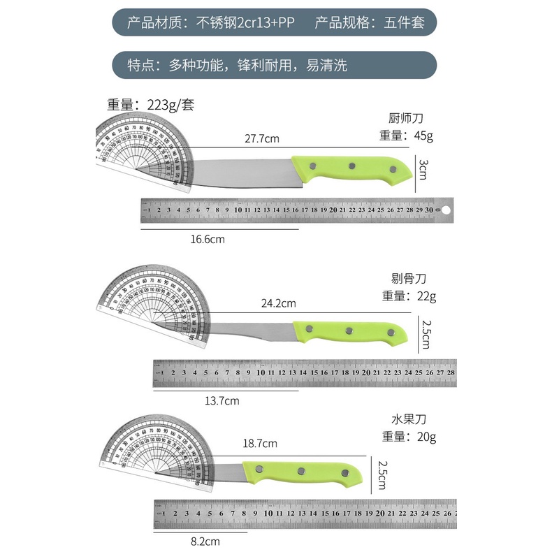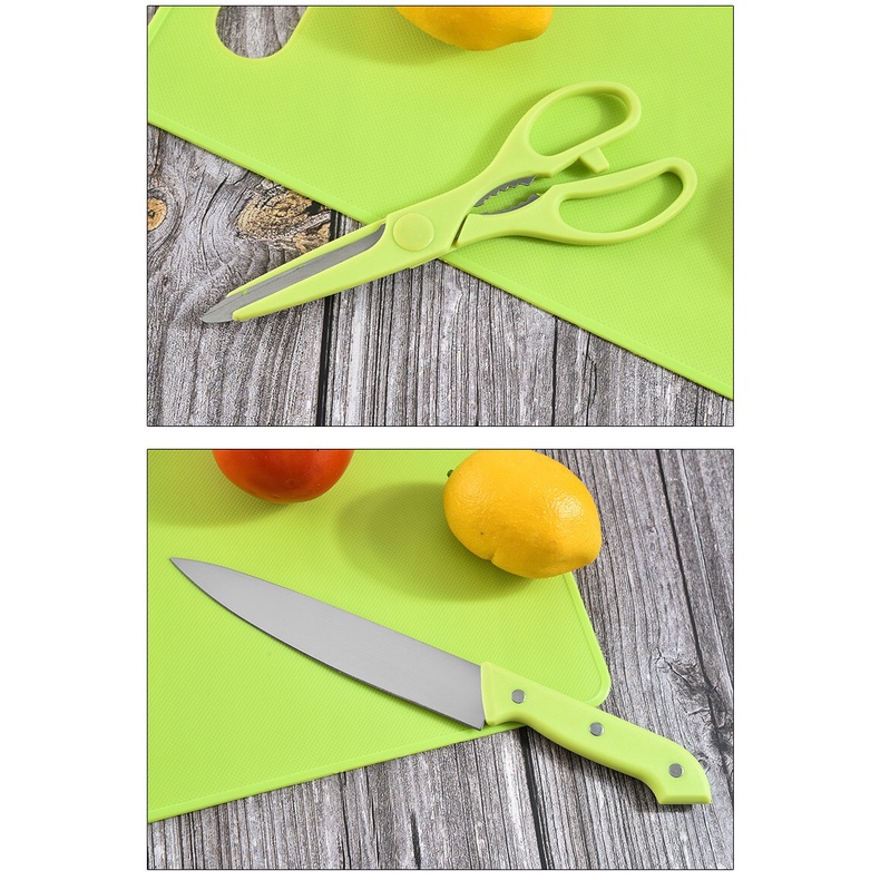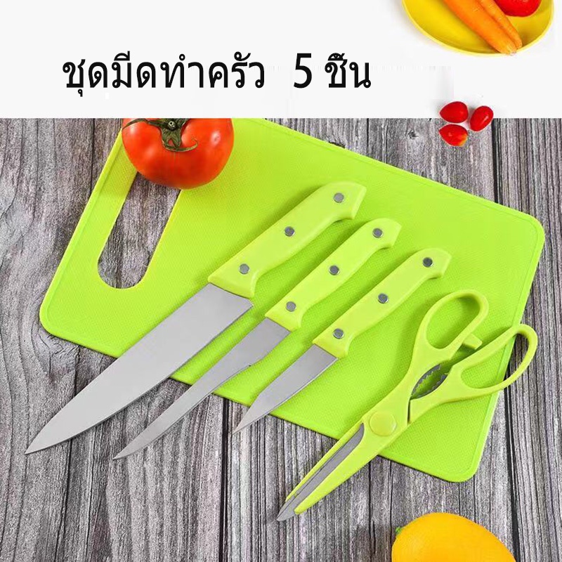 เซ็ตมีด พร้อมเขียงสีเขียว สดใส เซ็ตมีดทำอาหารพร้อมเขียง ชุดมีดสแตนเลส สีเขียวสดใส 5ชิ้น มาพร้อมเขียง ครบครันในชุดเดียว