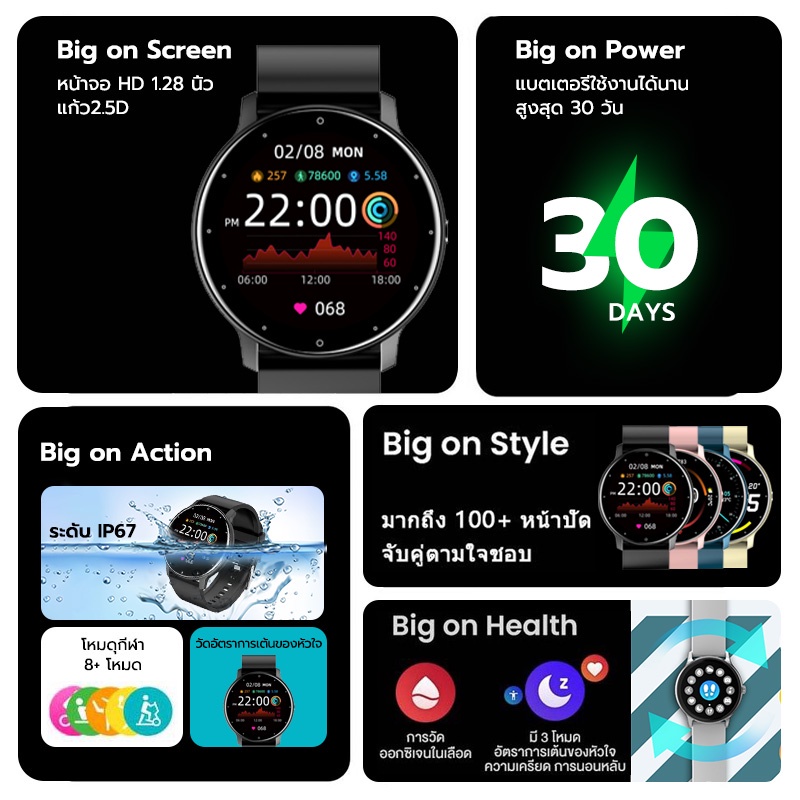 ของแท้100% นาฬิกาสมาร์ทวอทช์ นาฬิกาสมาร์ท Smart Watch สัมผัสได้เต็มจอ โทรออกรับสาย ออกกำลังกายได้ กันน้ำ