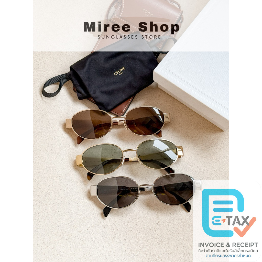 Celine Triomphe Metal 01 Sunglasses แว่นกันแดด เลนส์ดำ เคสรุ่นกระเป๋า ของแท้ CL40235U