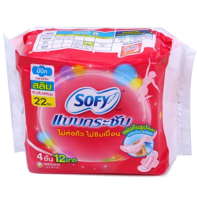 SOFY ผ้าอนามัย โซฟี แบบกระชับ สลิม มีปีก แบบกลางวัน 22ซม. 4ชิ้น