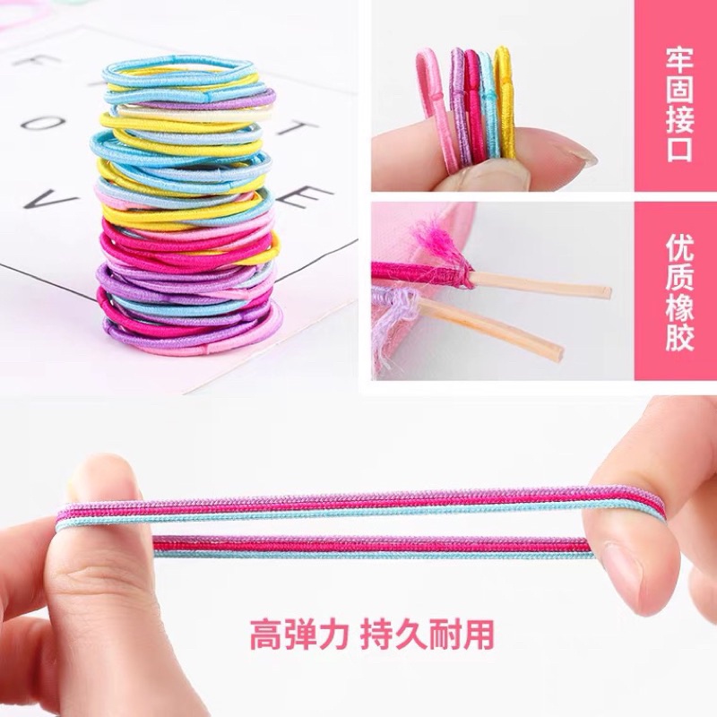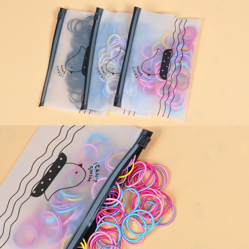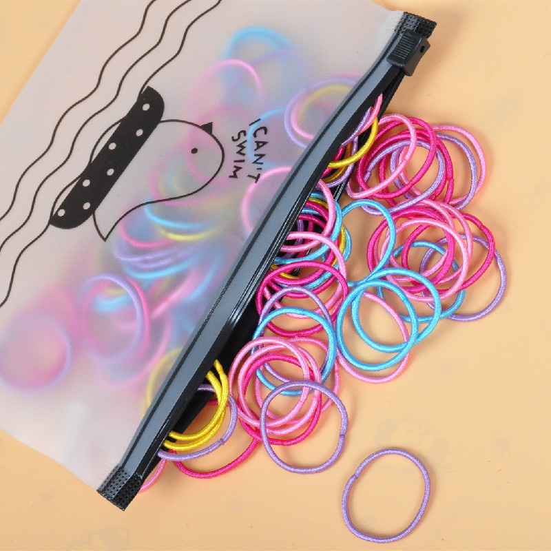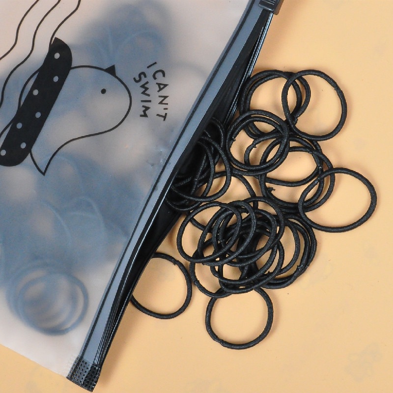 🔥ยางรัดผมไซส์เล็ก 100 เส้น มีซองซิบ ยางรัดผมไนล่อน ยางมัดผม แฟชั่นเกาหลี
