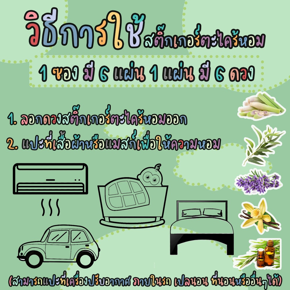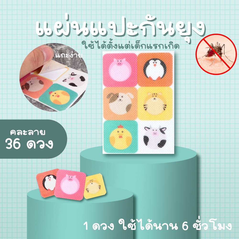 สติ๊กเกอร์ติดแมสก์ แผ่นแปะกันยุง 1ซอง 36 ดวง กลิ่นตะไคร้หอม คละแบบ-ลาย /1732
