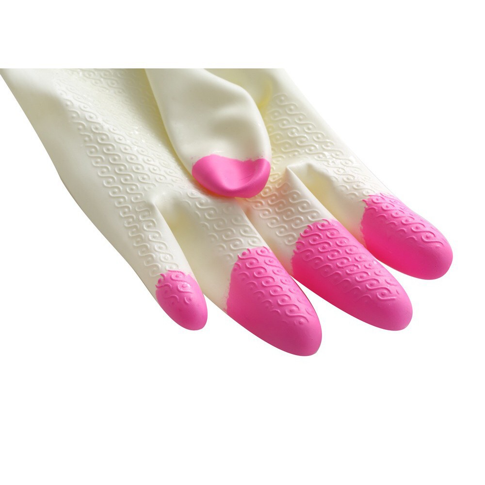 ถุงมือล้างจาน ทำความสะอาด ยืดหยุ่นกันน้ำ สีทูโทน 1คู่ คละสี /1480
