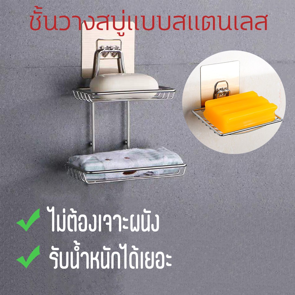 ที่วางสบู่ติดผนัง [ แบบสแตนเลส ] ไม่ต้องเจาะ รับน้ำหนักได้เยอะ รุ่น1332