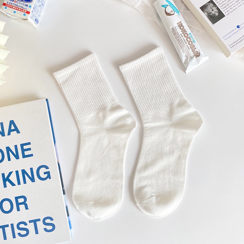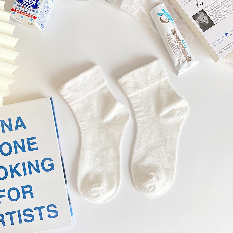 FHYL ใหม่ ถุงเท้า Jk น่ารัก ระงับกลิ่นกาย ถุงเท้าข้อกลาง สีขาว สําหรับผู้หญิง