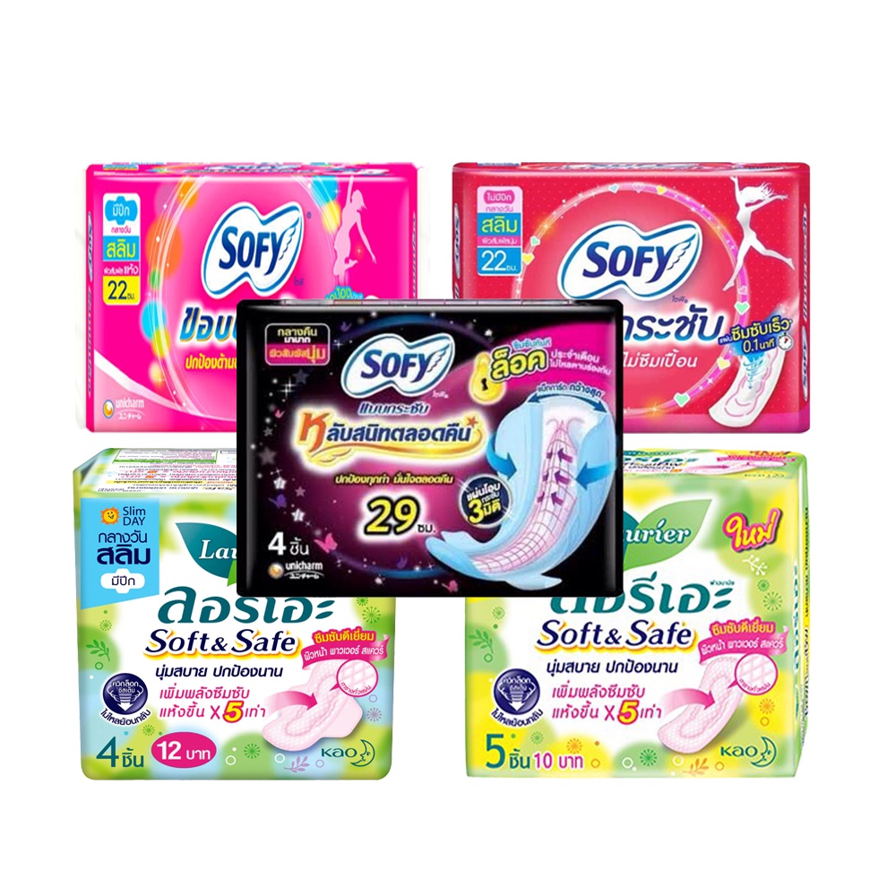 [เก็บโค้ดส่งฟรีหน้าร้าน] ผ้าอนามัย ลอรีเอะ โซฟี Laurier Sofy ผ้าอนามัยกลางวัน ผ้าอนามัยกลางคืน