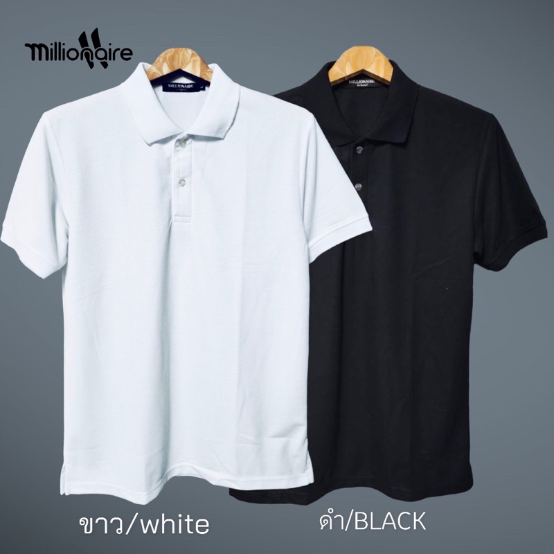 เสื้อโปโล สีพื้น เรียบ ( 2สีดำล้วน ขาวล้วน ) กระดุมเสื้อ ขาว/ดำ ทรงทันสมัย ผลิตจากผ้า TK