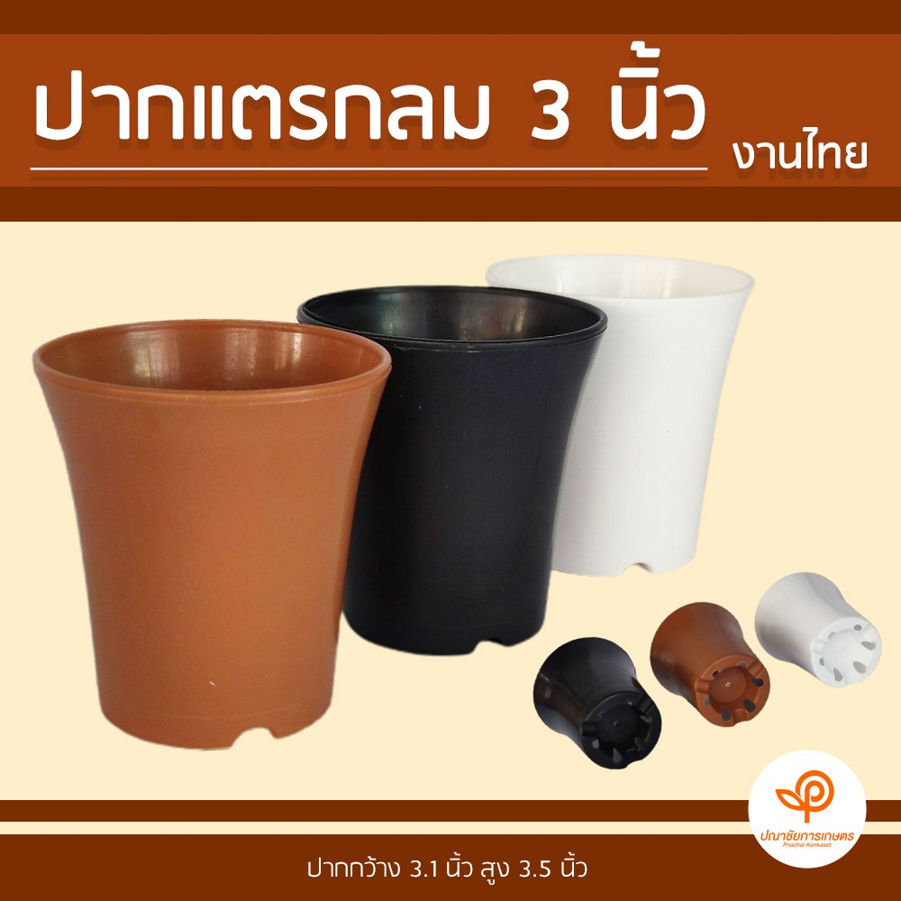 กระถางปลูกต้นไม้ ปากแตรกลม ขนาด 3 นิ้ว งานไทย (จำหน่ายแบบ 50 ใบ)
