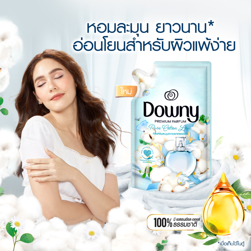[ใหม่!] Downy ดาวน์นี่ น้ำยาปรับผ้านุ่มสูตรเข้มข้น กลิ่นหอมละมุนจากดอกคอตตอน Fabric Softener Pure Cotton Love 480 ml