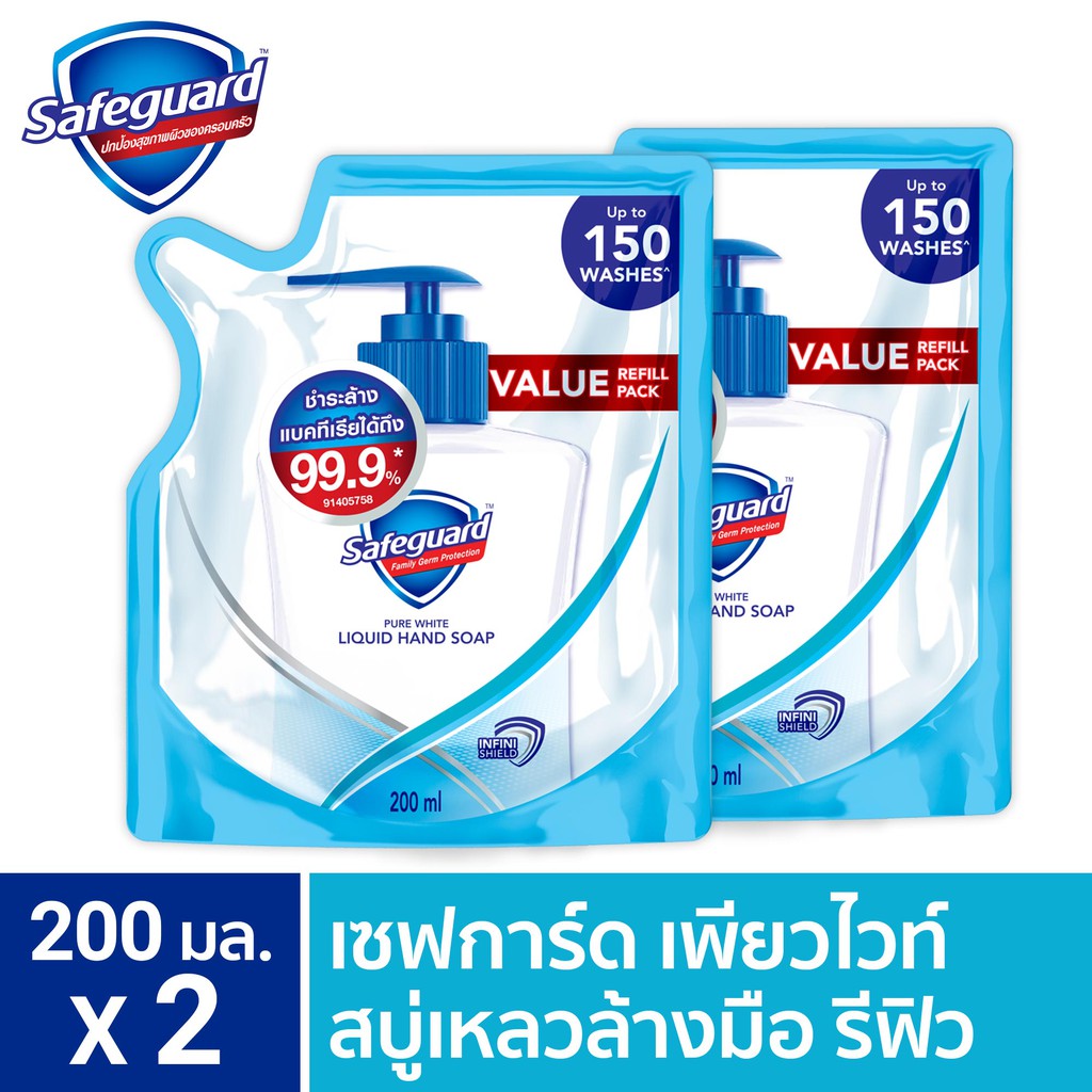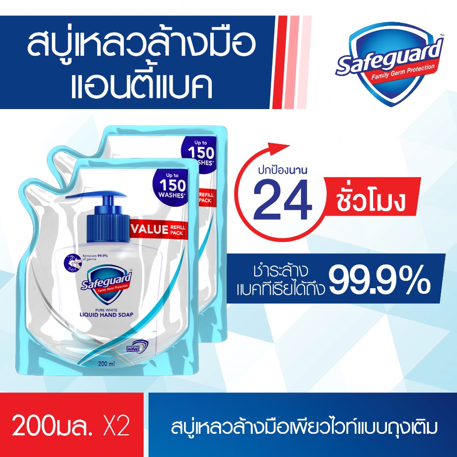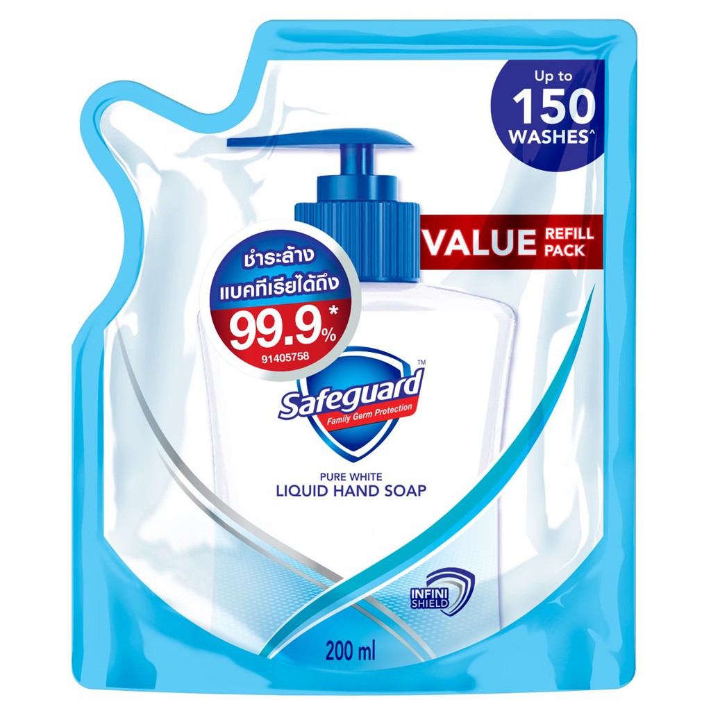 Safeguard สบู่แอนตี้แบค เซฟการ์ด เพียว ไวท์ ลิควิด แฮนด์ โซป สบู่เหลวล้างมือ แบบถุง 200 มล x2.: