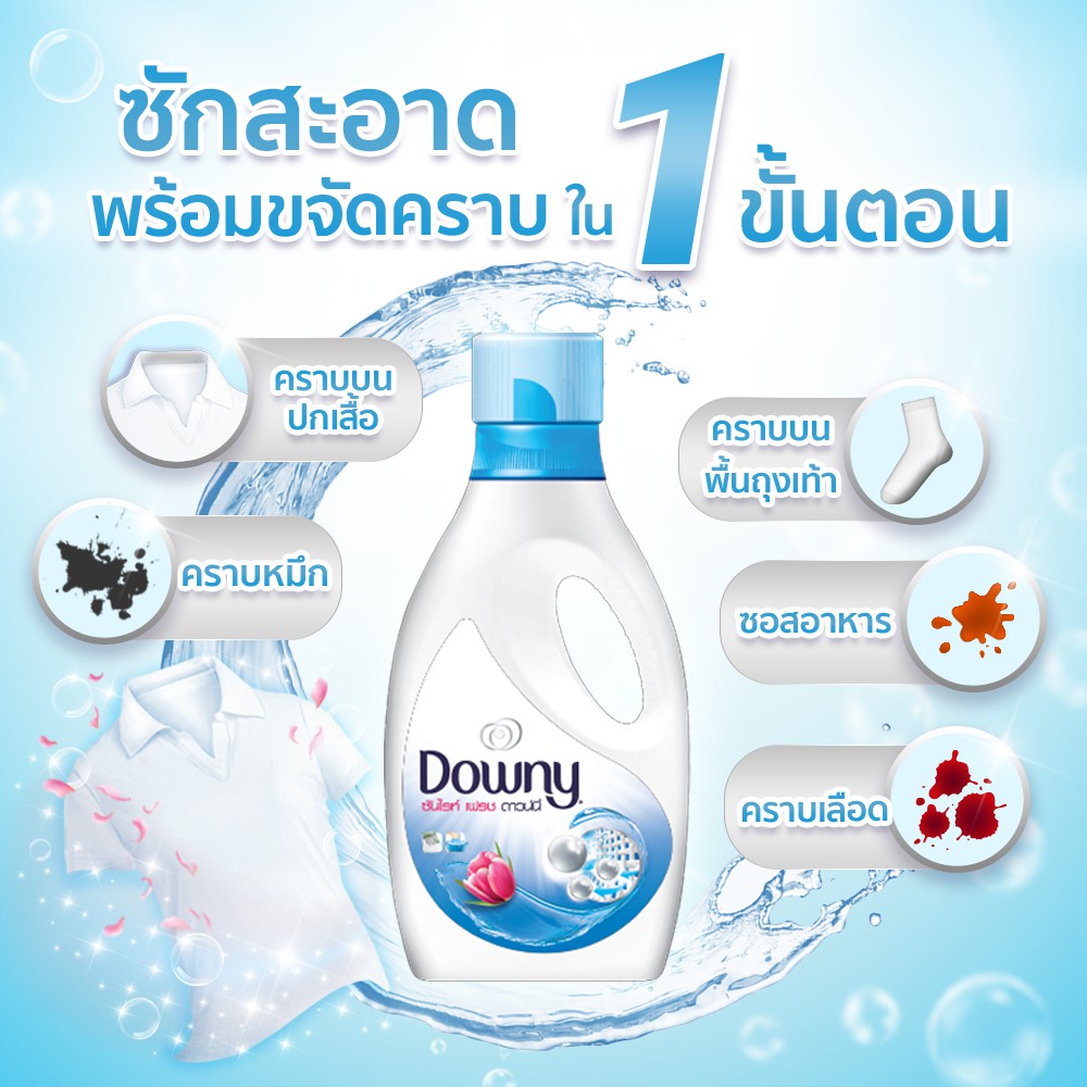 Downy ดาวน์นี่ น้ำยาซักผ้าสูตรเข้มข้น กลิ่นซันไรท์ เฟรช ถุงเติม Concentrated Laundry Detergent Sunrise Fresh 550ml x3ถุง