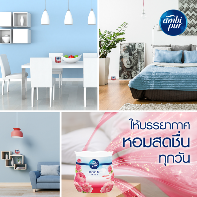 [แพ็คสุดคุ้ม] Ambi Pur แอมบิเพอร์ เจล เฟรช กลิ่นโรแมนติก โรส เจลหอมปรับอากาศ Romantic Rose Air Freshener Gel 180 กรัม