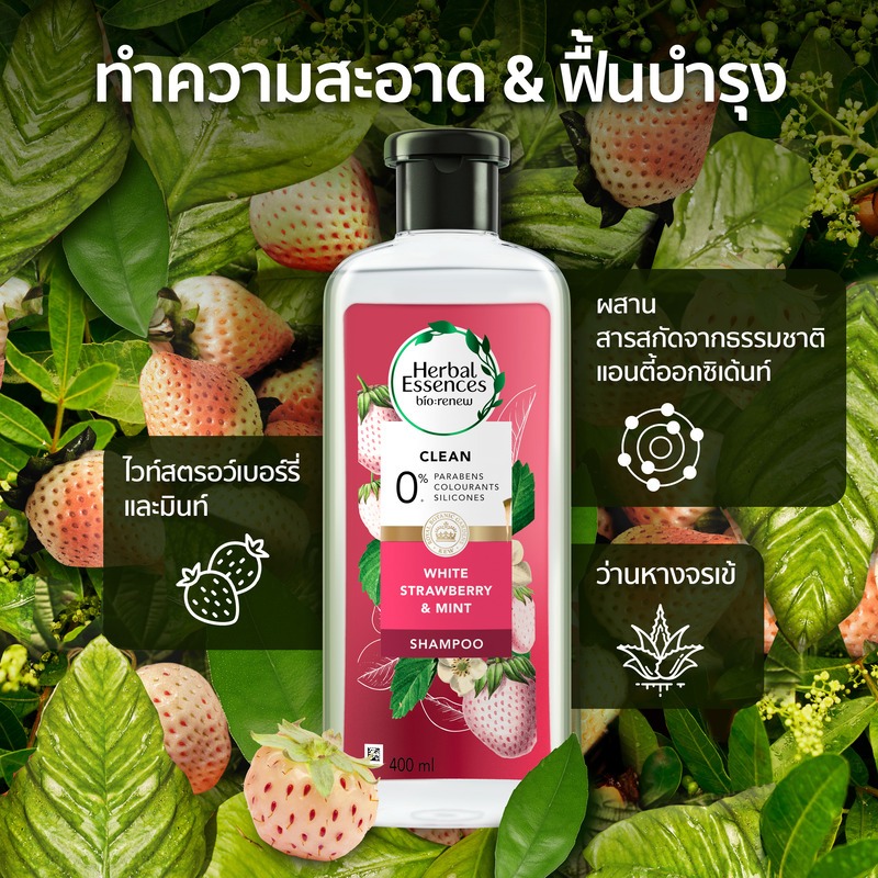 [ใหม่] Herbal Essences เฮอร์บัล เอสเซ้นส์ คลีน ไวท์ สตรอเบอรี่ & สวีทมินท์ 400 มล. White Strawberry & Sweet Mint 400 ml