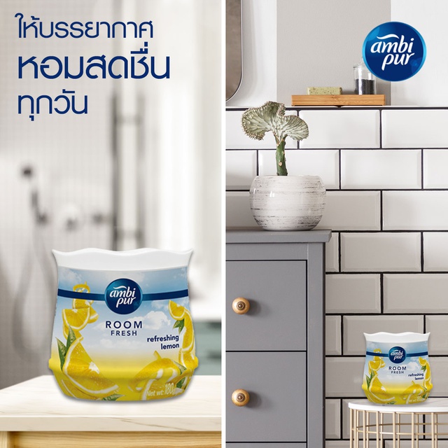 [แพ็คสุดคุ้ม] Ambi Pur แอมบิเพอร์ เจล เฟรช เจลหอมปรับอากาศ กลิ่นรีเฟรชชิ่ง เลมอน Refreshing Lemon Air Freshener Gel 180