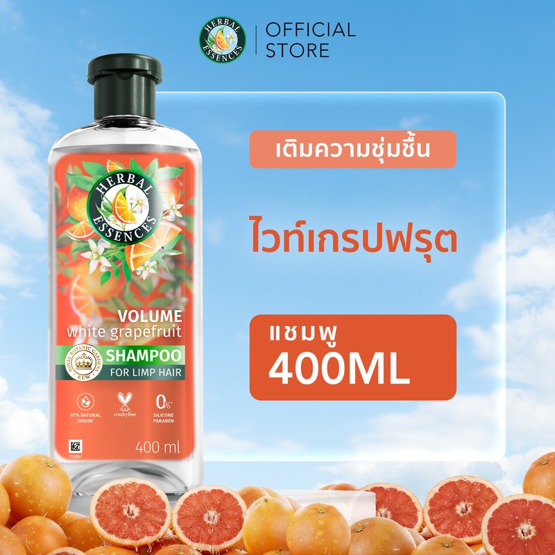 [ใหม่] Herbal Essences เฮอร์บัล เอสเซ้นส์ วอลุ่ม ไวท์ เกรปฟรุต & โมซ่ามิ้นท์ 400 มล. White Grapefruit & Mosa Mint 400ml