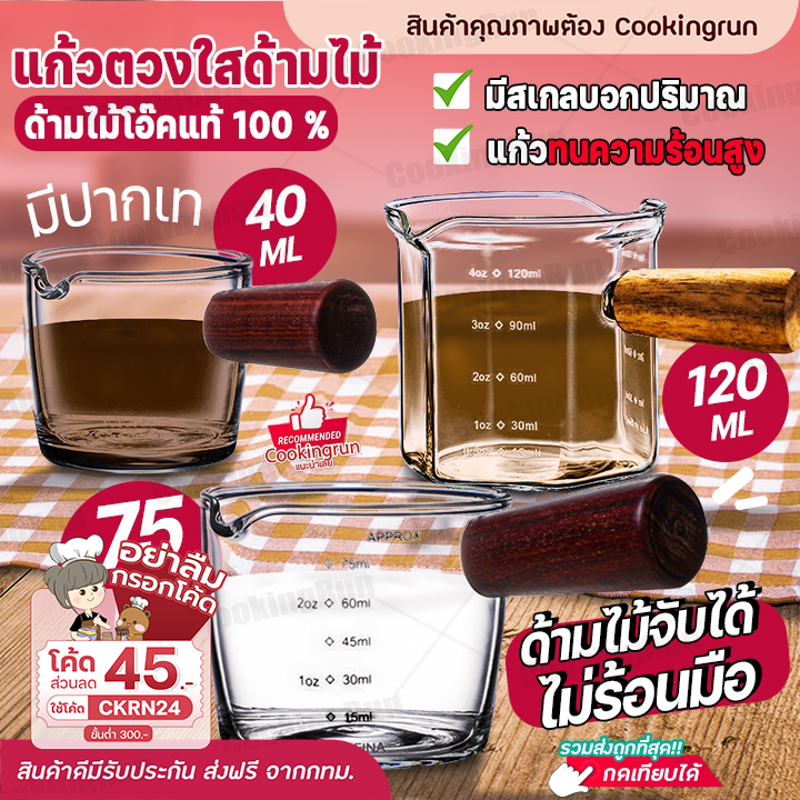 แก้วตวง ด้ามไม้ 45 ml / 75 ml / 120 ML cookingrun 🚚 📌