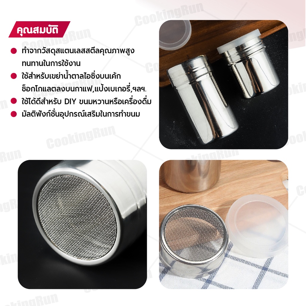 กระปุกโรยผง Cookingrun ที่โรยผง ขวดโรยผง ที่โรยน้ำตาลไอซ์ซิ่ง ที่โรยหน้าเค้ก ที่โรยพิซซ่า 🚚 📌