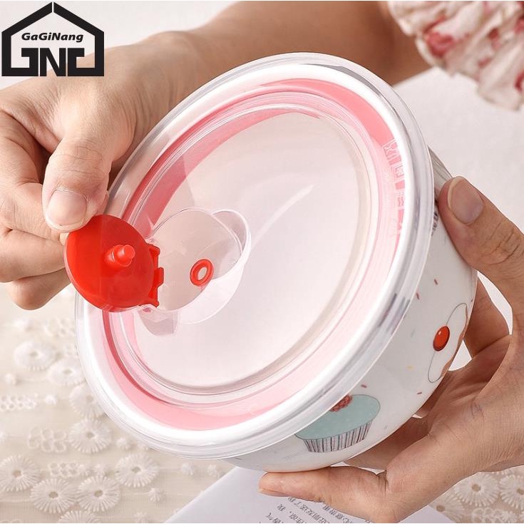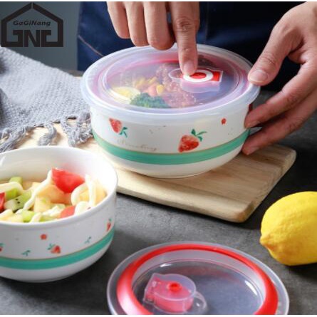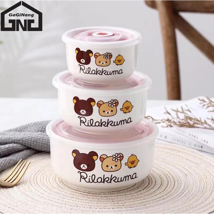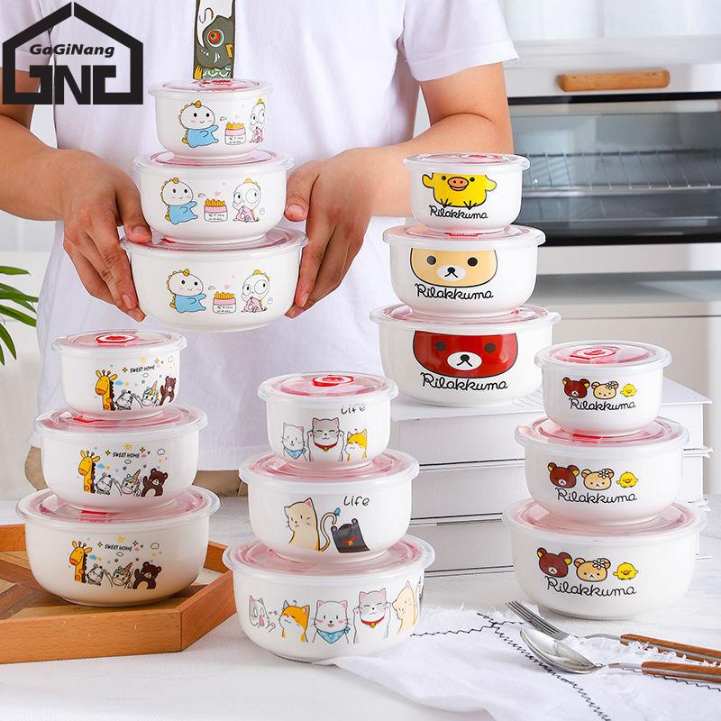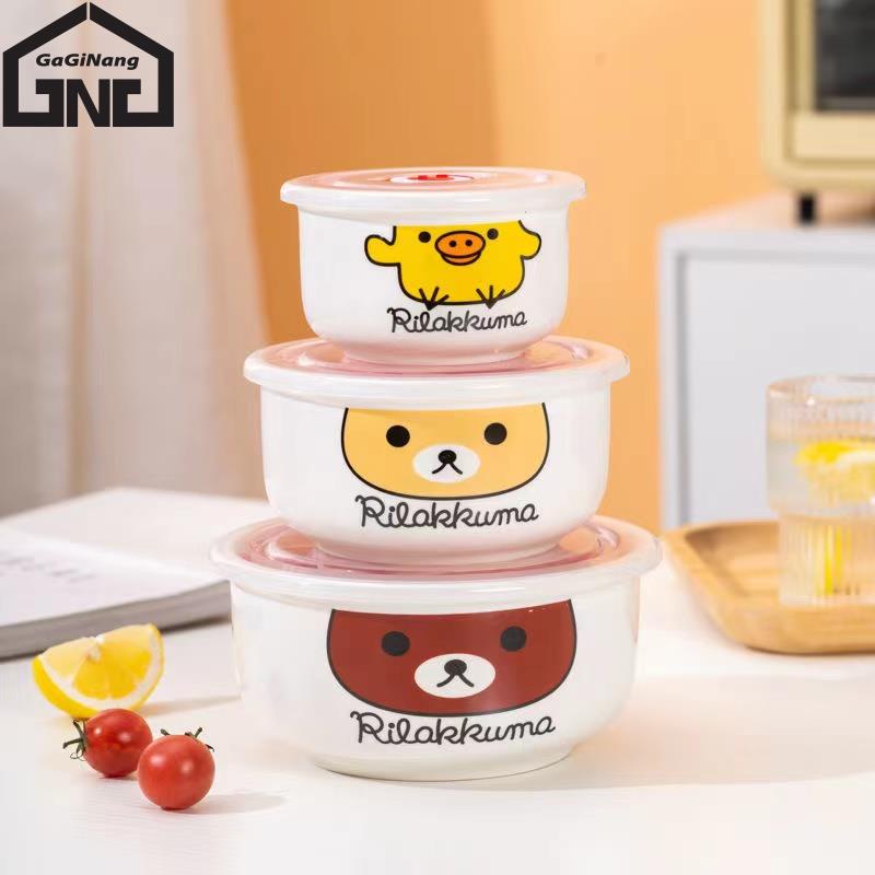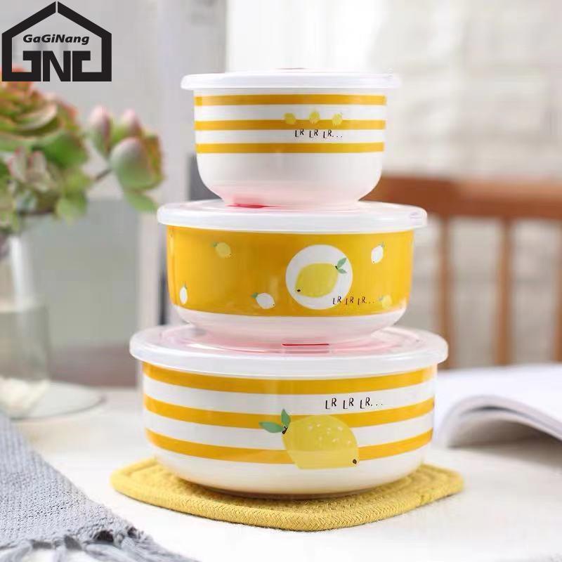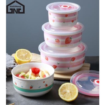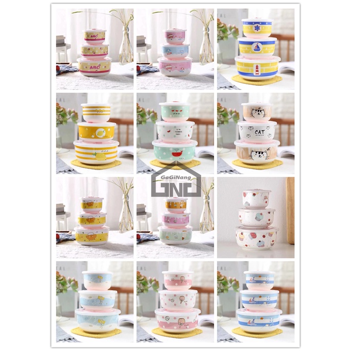 GaGiNang ชุดชามเซรามิค เซรามิค ชามเซรามิค พร้อมฝาปิด 3ใบ/ชุด เข้าไมโครเวฟได้ ชาม ถ้วย