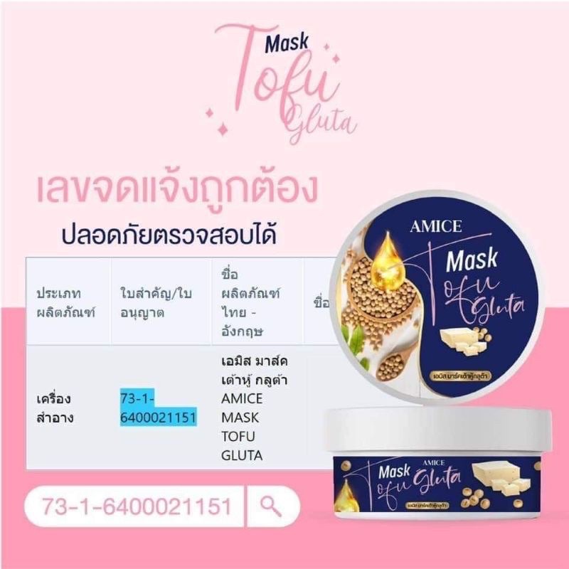 🧈Amice Mask Tofu Gluta เอมิสมาร์คเต้าหู้ กลูต้าผิวขาว พอกผิวขาว 200 g.