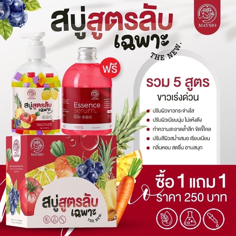 🍬(แพคเกจใหม่) สบู่สูตรลับเฉพาะ สบู่ผิวขาว Mayziio สบู่สูตรลับ แถม เอสเซ้นส์เซรั่ม รุ่นลิมิเตด ขนาด 500 ml. มีกล่อง