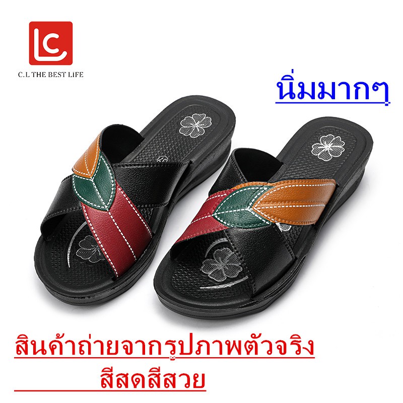 CL รองเท้าแตะแบบสวมส้นหนา รองเท้าแตะใบไม้ นิ่มมากๆ รุ่นJH-703 size36-41(ไซส์มาตรฐาน)